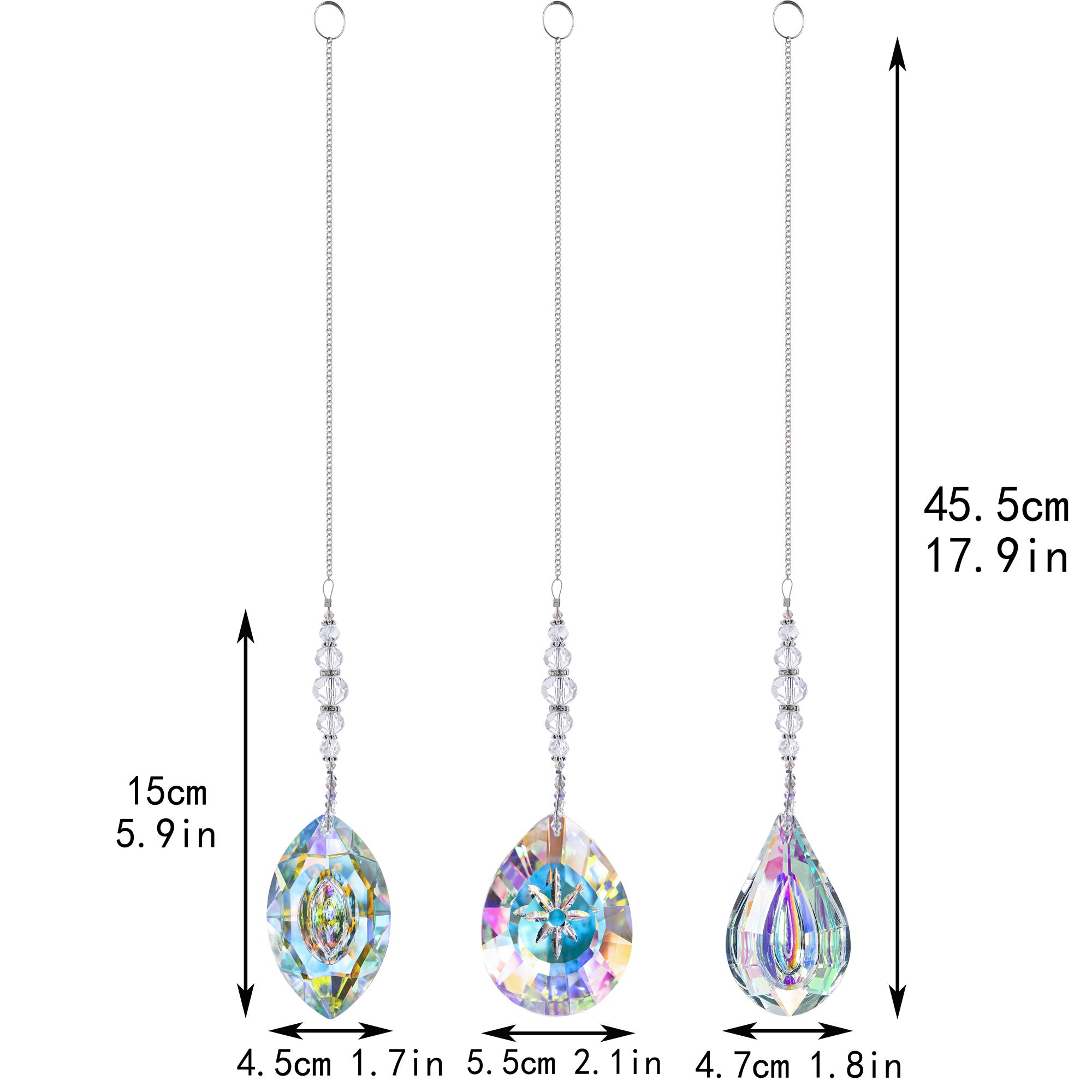 HDCRYSTALGIFTS Kristall-Sonnenfänger, AB-farbige Sonnenfänger mit Kristallen zum Aufhängen an Fenstern, Regenbogenmacher, Prismen, Sonnenfänger, Innen- und Aussenbereich, Dekoration, Ornamente, 3 Stück