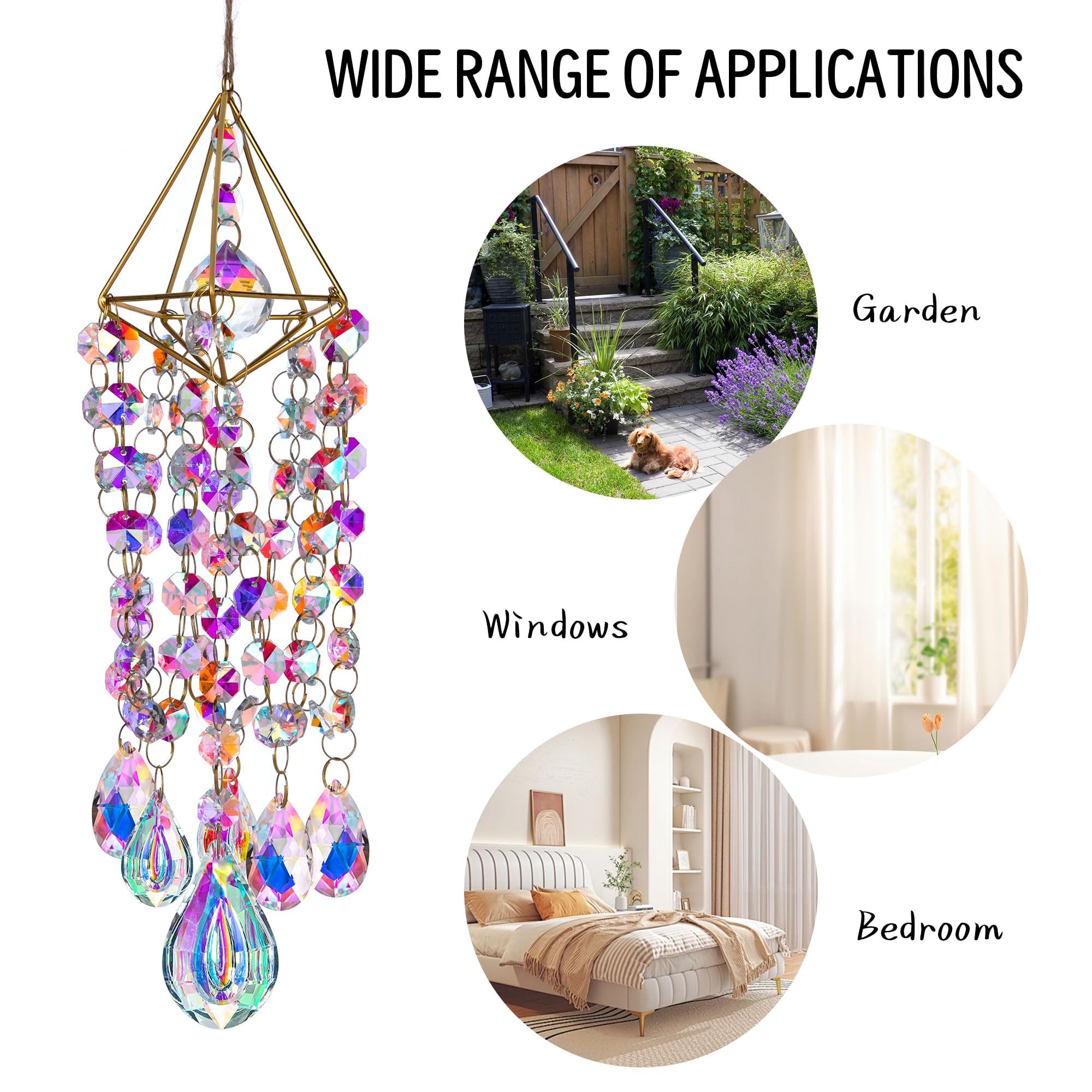 HDCRYSTALGIFTS Vergoldet Kristall Sonnenfänger Windspiel für Garten & Fenster | Handgefertigter Regenbogenmacher, Lichtfänger | Outdoor Windspiel mit Buntglas, Boho Deko zum Aufhängen