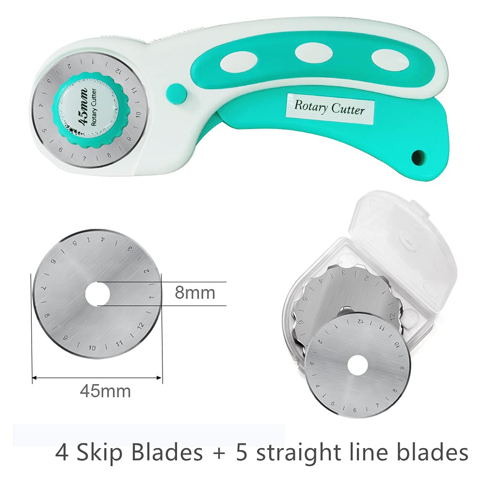 5 x extra 45 mm Rollschneider-Klingen mit kostenlosem Etui.