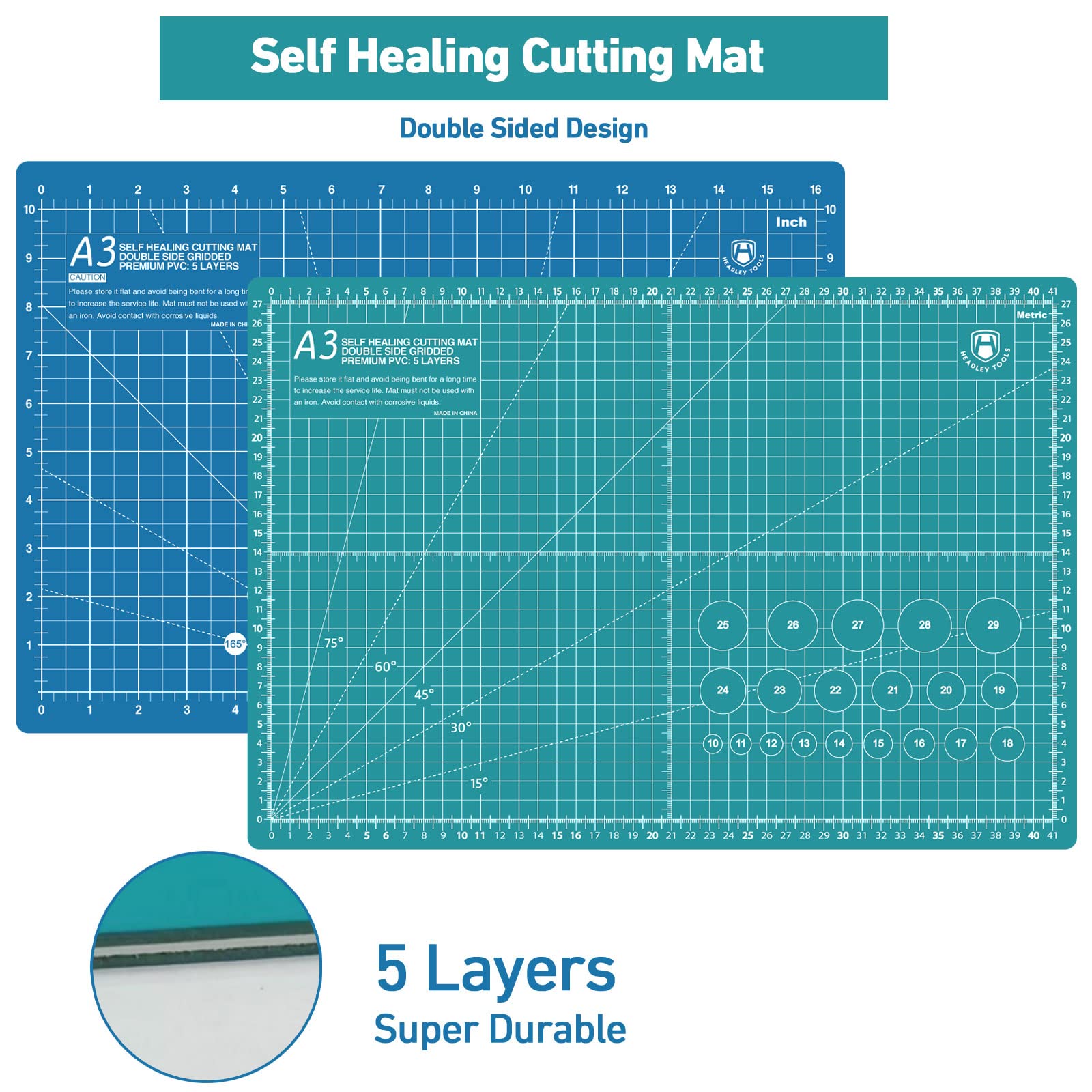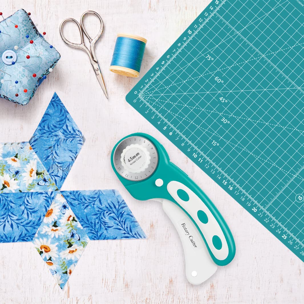 Rollschneider Set - 45mm Rollschneider Stoffschneider Set inkl. A3 Schneidematte, Rollschneider, Ersatzklingen, Patchwork-Lineal, Stoffklammern, ideal zum Basteln, Nähen, Patchworken (Grün)