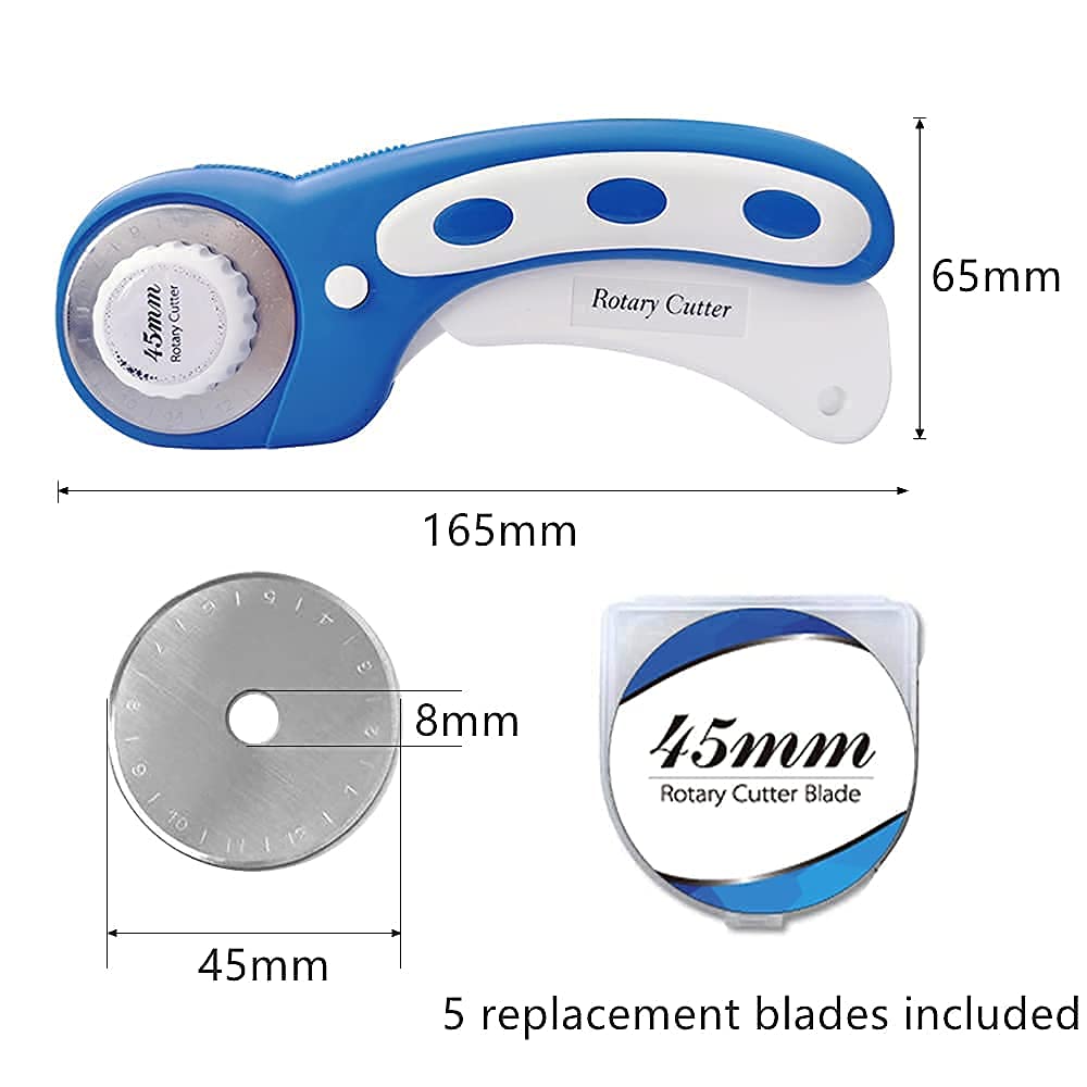 Headley Tools Rollschneider mit 5 Ersatzklingen, Stoffschneider mit Ergonomischem Griff und Sicherheitsverschluss Rollschneider 45mm für Stoff, Leder, Basteln, Nähen, Quilten (Blau)