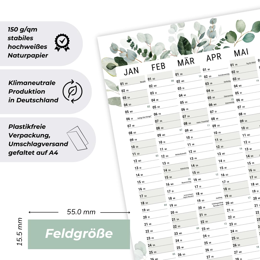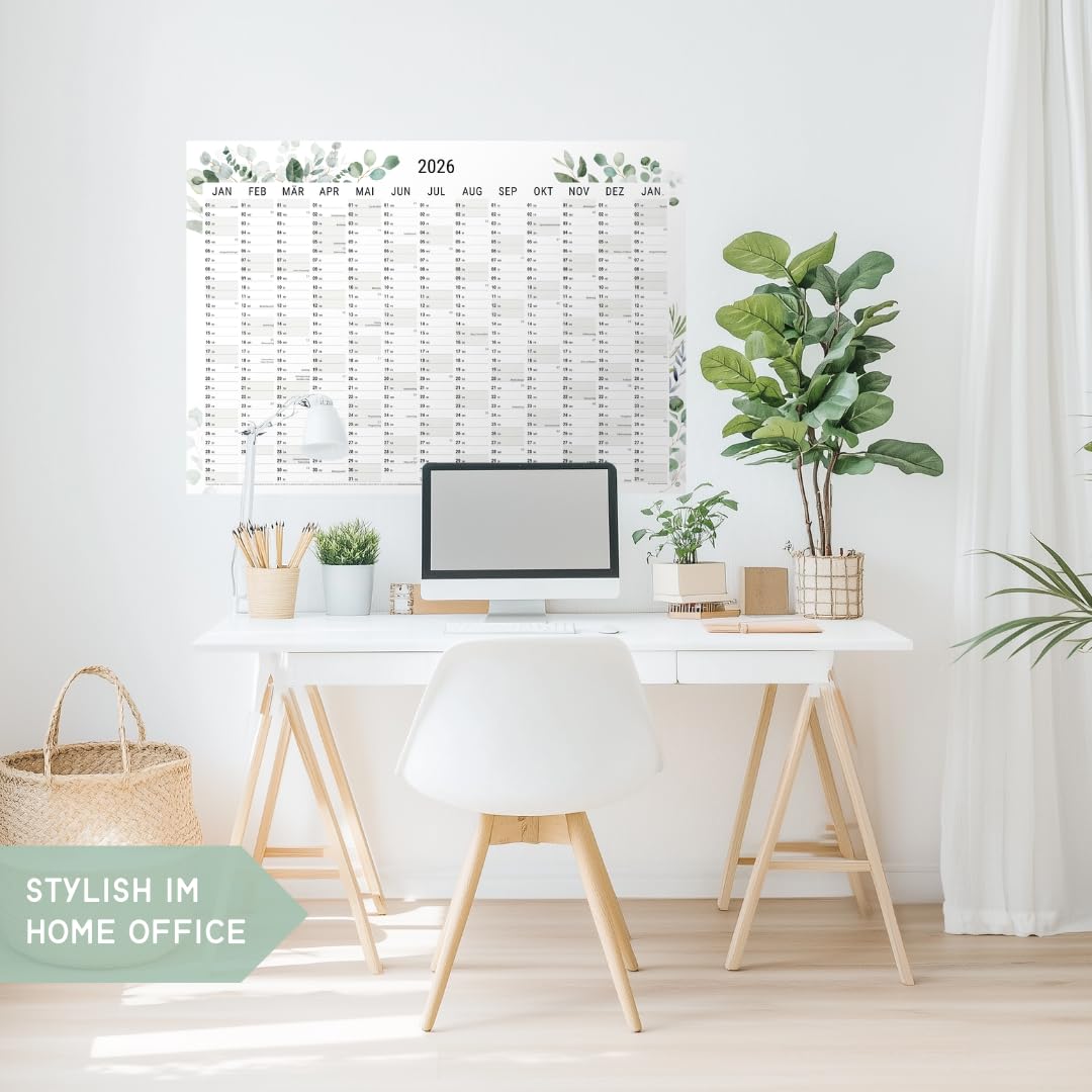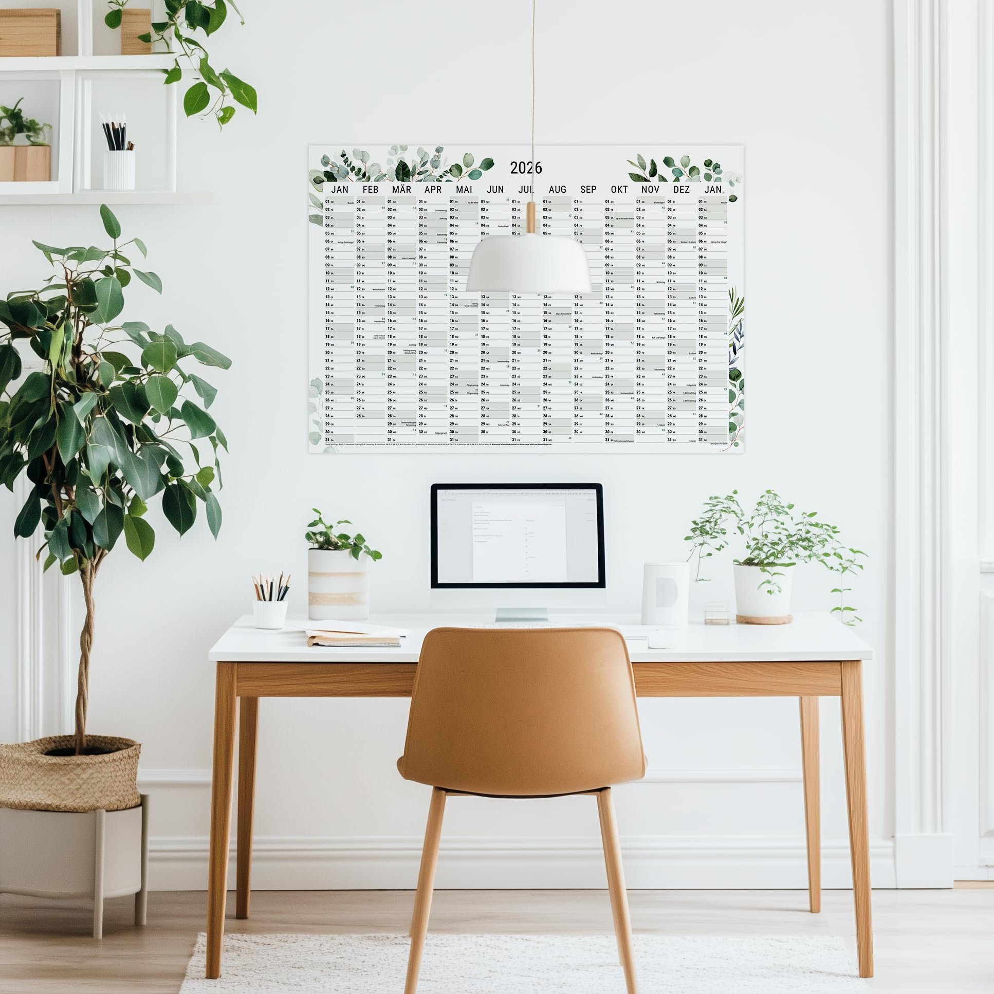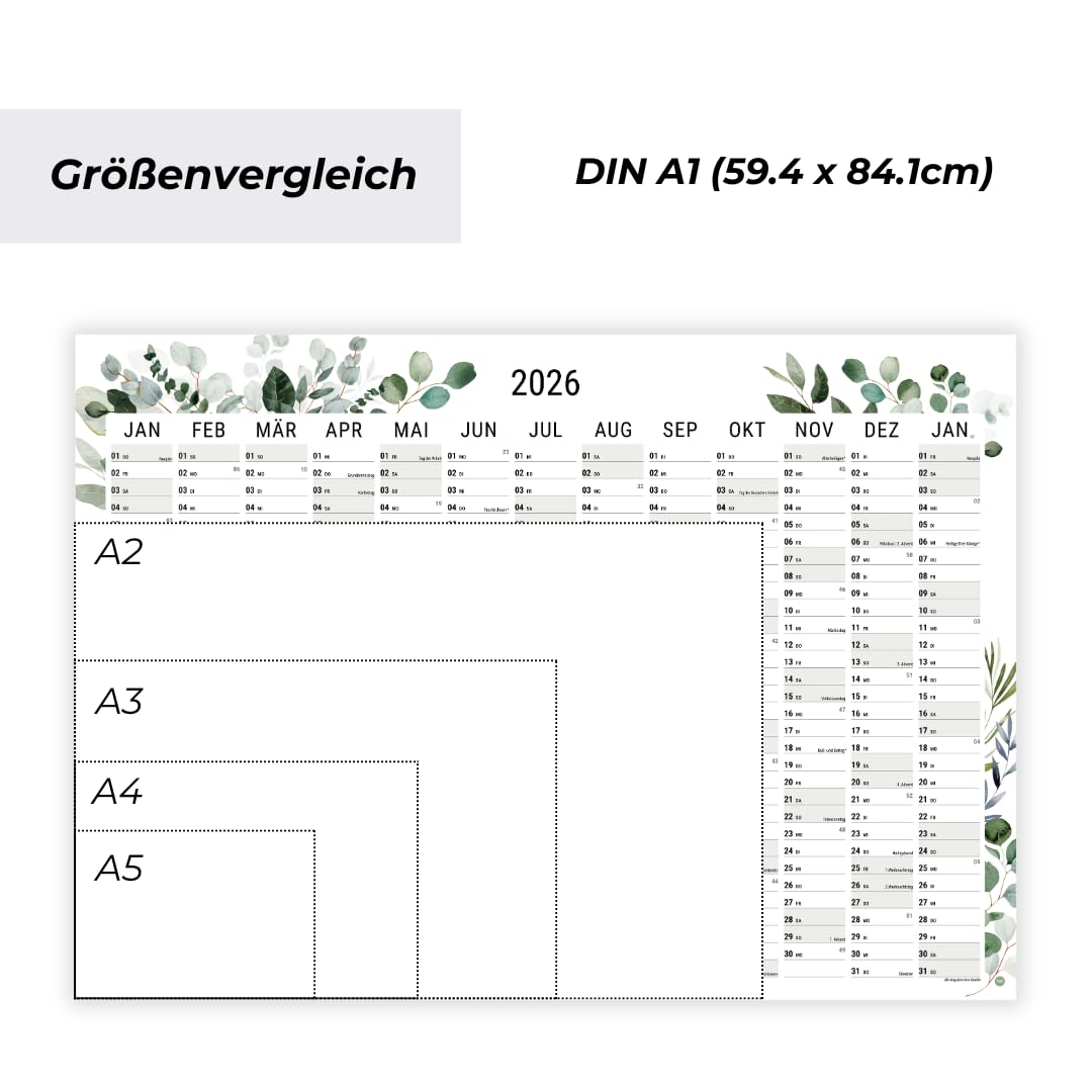 Der heaven+paper Jahresplaner 2026 ist mehr als nur ein Kalender – er ist ein stilvolles Organisationstool, das Ihnen hilft, den Überblick über das Jahr zu behalten. Dieser A1 Wandkalender, gefaltet auf handliche 80x60 cm, kombiniert Funktionalität mit ästhetischem Design, das exklusiv von Designerinnen gestaltet wurde. Der Kalender ist modern, elegant und passt perfekt in jedes Büro, Homeoffice, in die Schule oder in Ihr Zuhause. Nachhaltigkeit und Qualität stehen bei uns im Vordergrund. Der Kalender wird von unserem frauengeführten Familienunternehmen in Bayern mit viel Liebe zum Detail und auf FSC-zertifiziertem Naturpapier produziert. Unsere umweltfreundlichen Produktionsmethoden und die nachhaltige Materialwahl spiegeln unser Engagement für eine verantwortungsvolle Herstellung wider. Der Kalender bietet Ihnen 14 Monate Planungssicherheit und umfasst alle wichtigen Feiertage, Schulferien und Kalenderwochen in Deutschland. Die extra grossen Felder bieten ausreichend Platz für Ihre Termine, Projekte und To-Dos, was den Kalender zu einem unverzichtbaren Begleiter im Alltag macht. Harmonische, natürliche Farben sorgen für Übersicht und Freude an der Nutzung. Ein weiterer Pluspunkt: Der Kalender wird gefaltet geliefert, was ein lästiges Rollen vermeidet und eine einfache, umweltfreundliche Lieferung im Umschlag ermöglicht. So können Sie ihn direkt nach Erhalt aufhängen und nutzen. Der heaven+paper Jahresplaner 2026 ist nicht nur ein praktisches Hilfsmittel, sondern auch ein Zeichen für Stil und Nachhaltigkeit. Unterstützen Sie ein kleines, von Frauen geführtes Familienunternehmen und bringen Sie Eleganz und Organisation in Ihren Alltag. Mit diesem Kalender sind Sie bestens vorbereitet für das Jahr 2026.