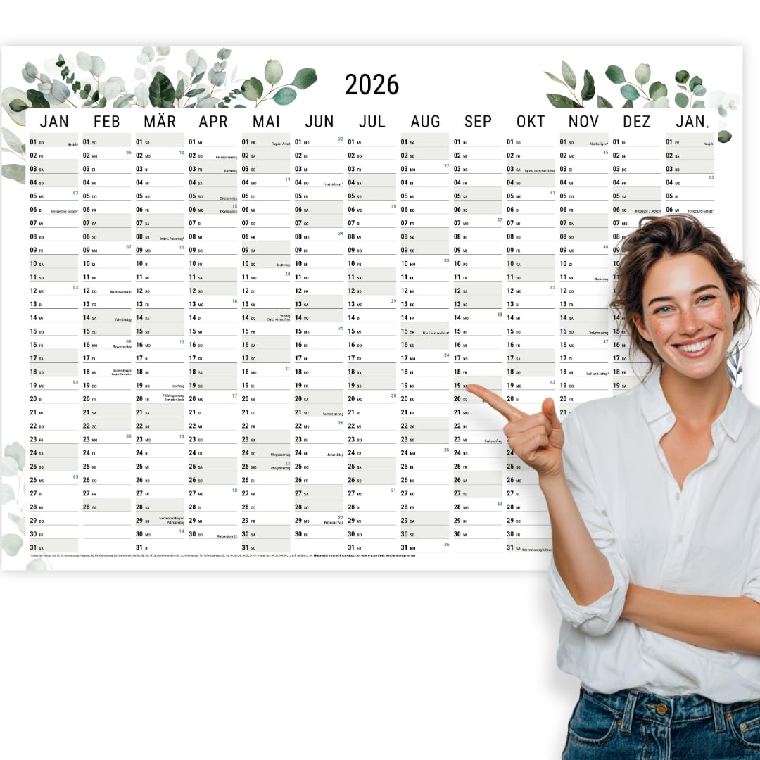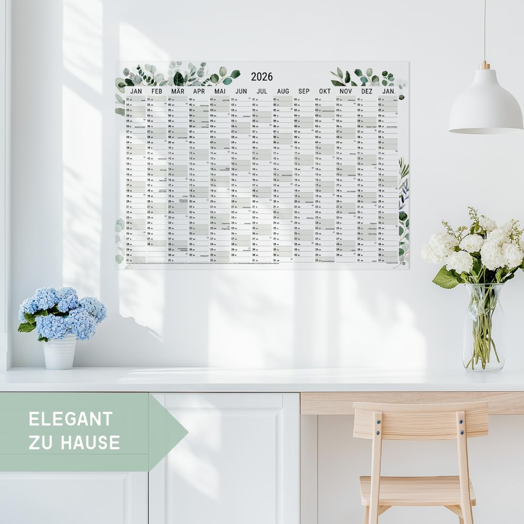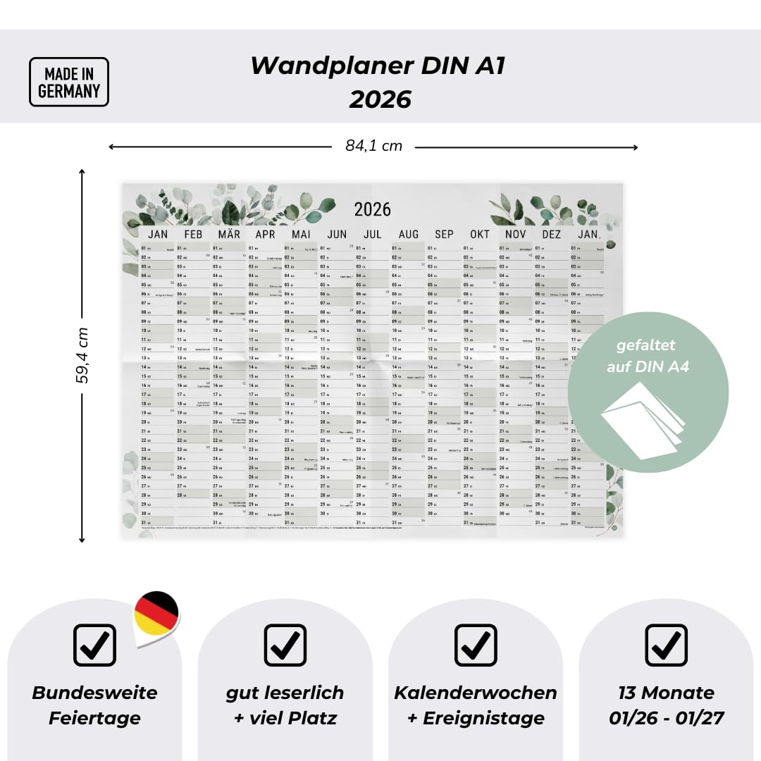 heaven+paper® Wandkalender 2026 | Jahresplaner 2026 A1 | Jahreskalender 26 aus FSC zertifizierten Naturpapier | 12 Monate mit Feiertagen | Calendar made in Germany | XXL Wandkalender | Wandplaner