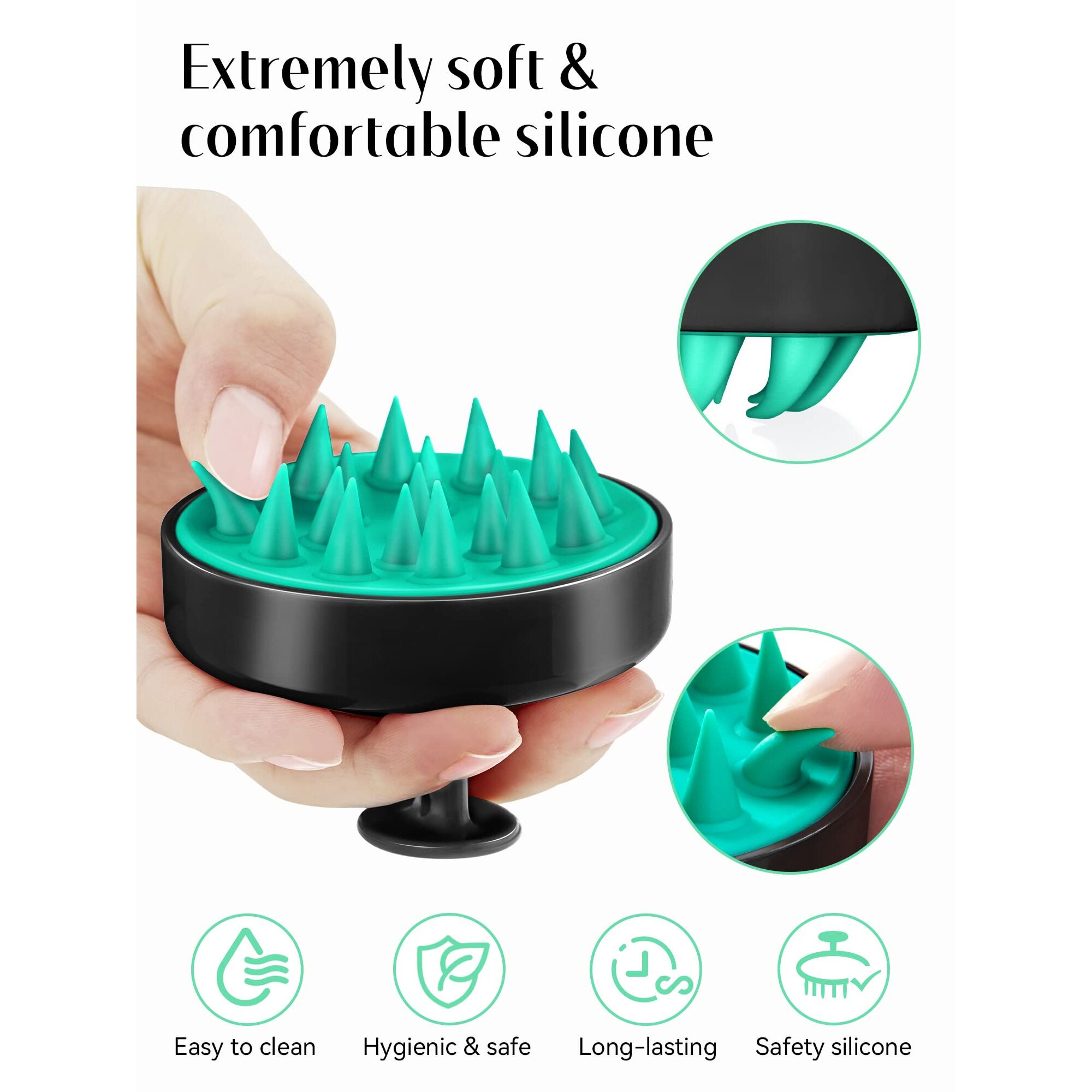 HEETA Kopfhaut-Massagebuerste Tuerkis-Schwarz – Shampoo-Buerste fuer nasses und trockenes Haar, weiches Silikon, Peeling und Kopfmassage