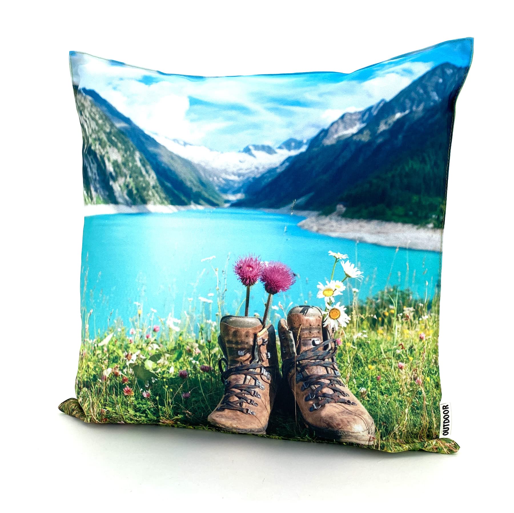 heimtexland ® Outdoorkissen Bedruckt 45x45 Garten Lounge Dekokissen Outdoor Lotus Effekt Typ742 Alpen Stiefel