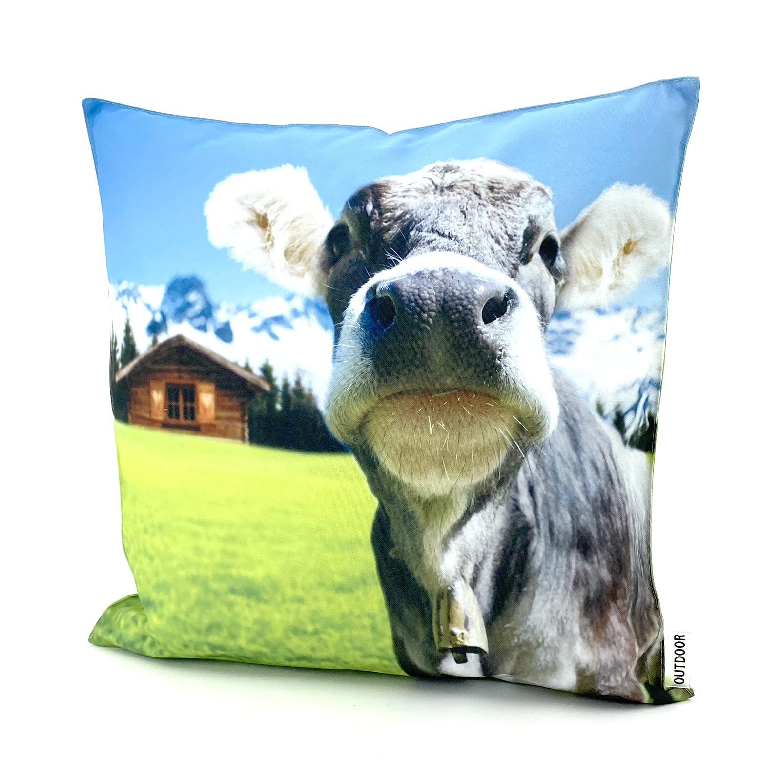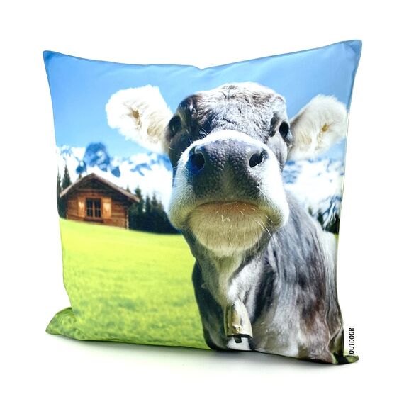 heimtexland ® Outdoorkissen Bedruckt 45x45 Garten Lounge Dekokissen Outdoor Lotus Effekt Typ742 Alpstyle Kuh