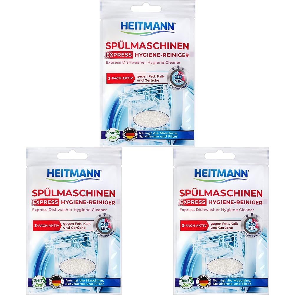HEITMANN Express Spülmaschinen Reiniger 30g: Reiniger für Geschirr, 3fach aktiv gegen Fett, Kalk, Gerüche, wirkt schon im Kurzprogramm, spart Zeit, Energie und Kosten (Packung mit 3)