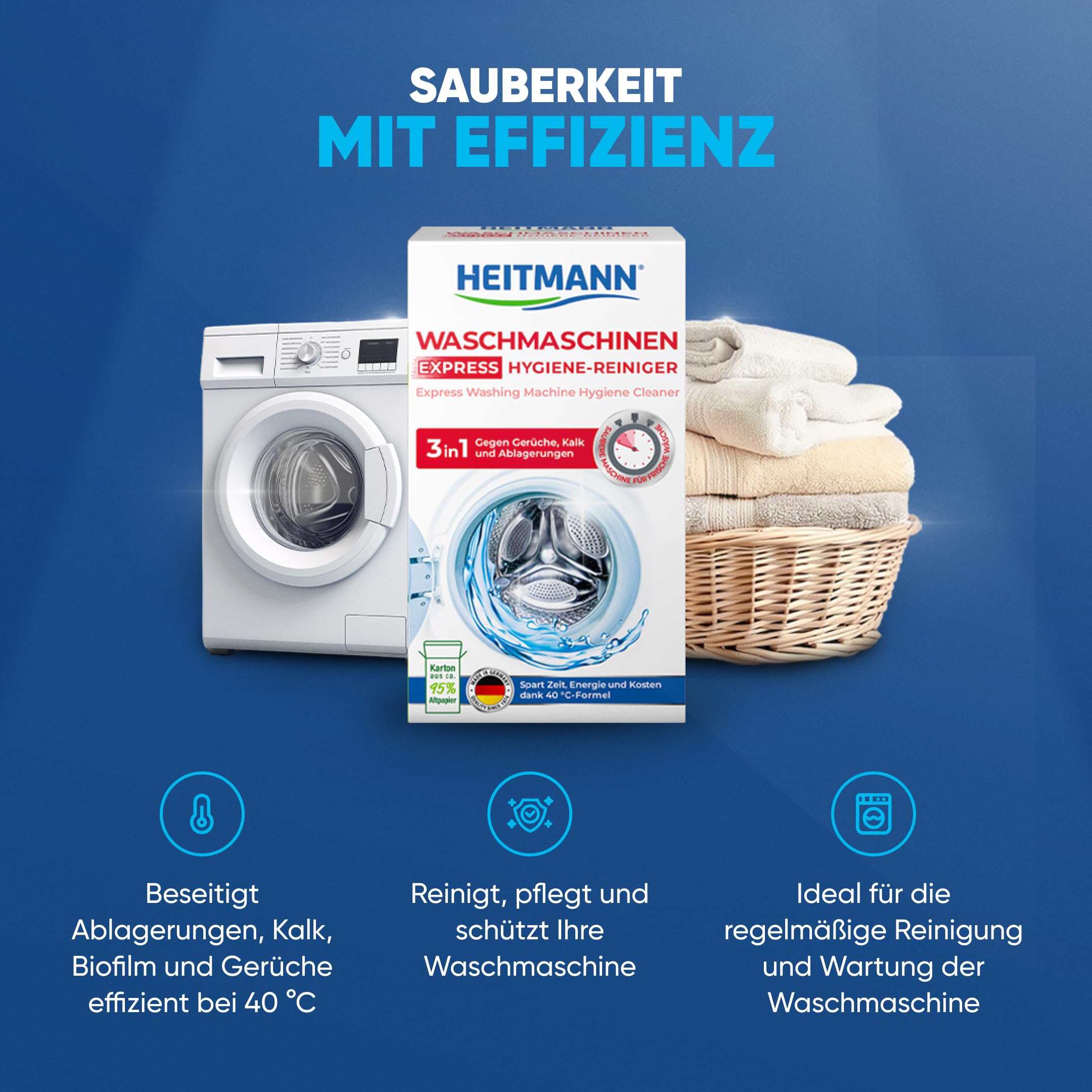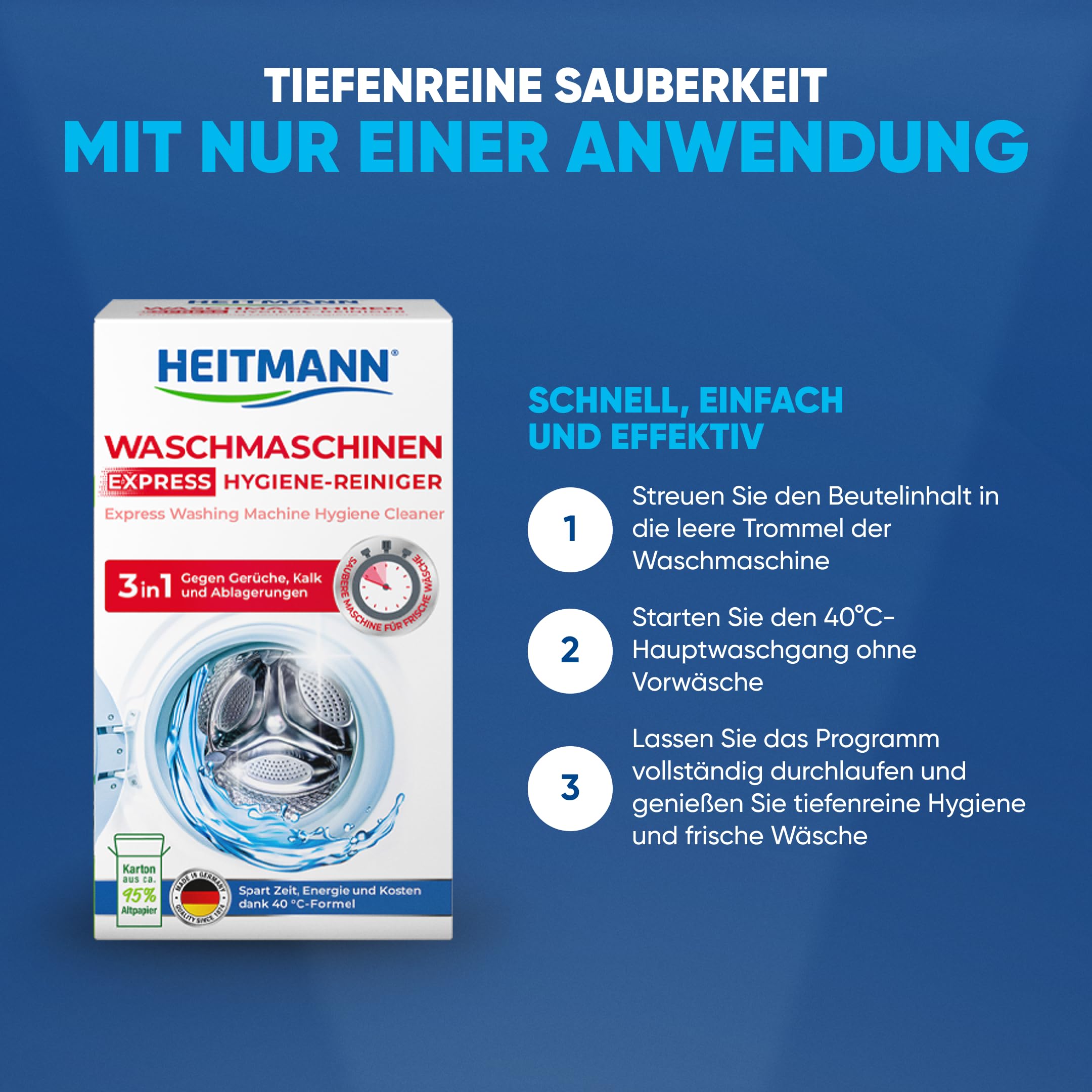 HEITMANN Express Waschmaschinen Reiniger: entfernt Kalk, Ablagerungen und Gerüche, Maschinenreiniger, 250 g