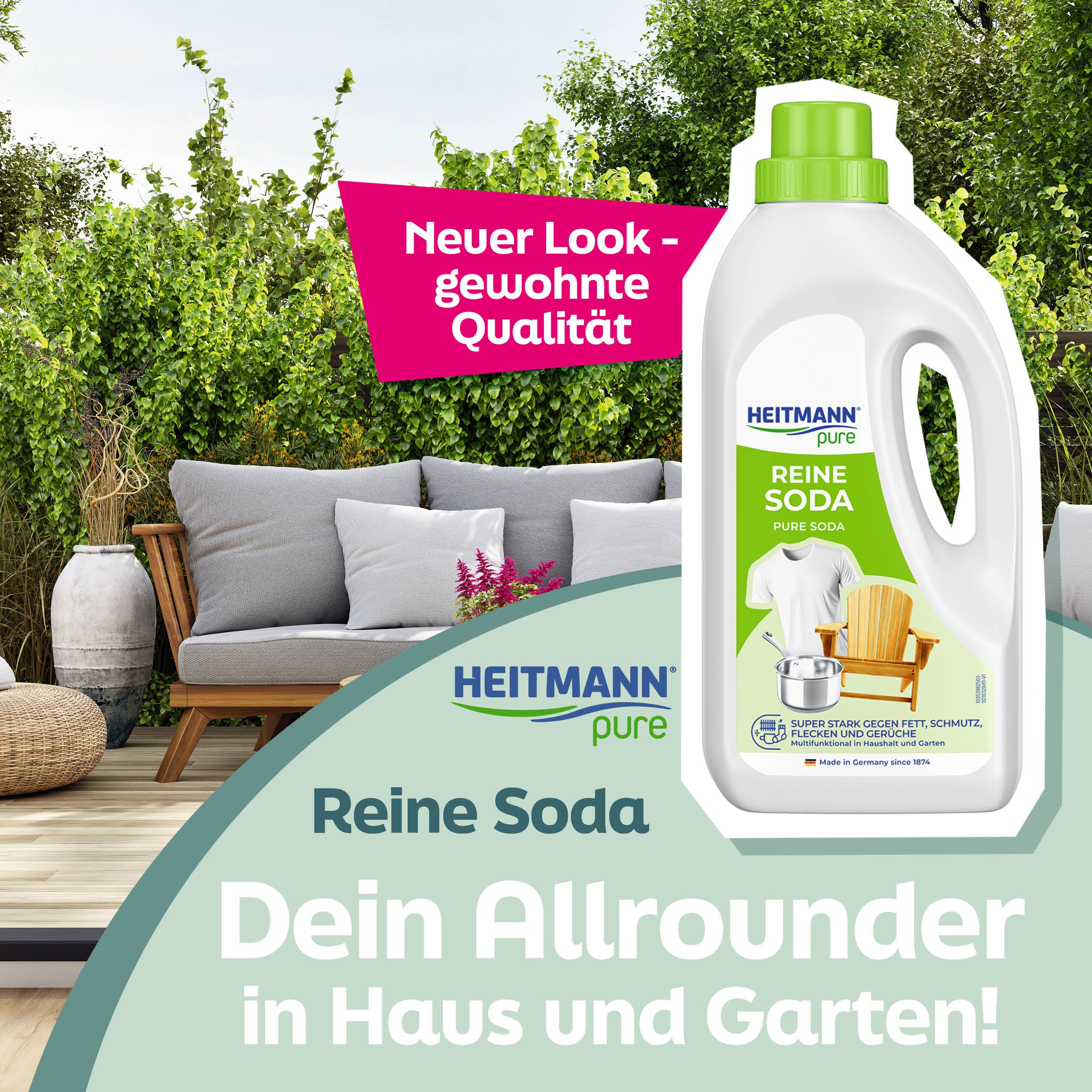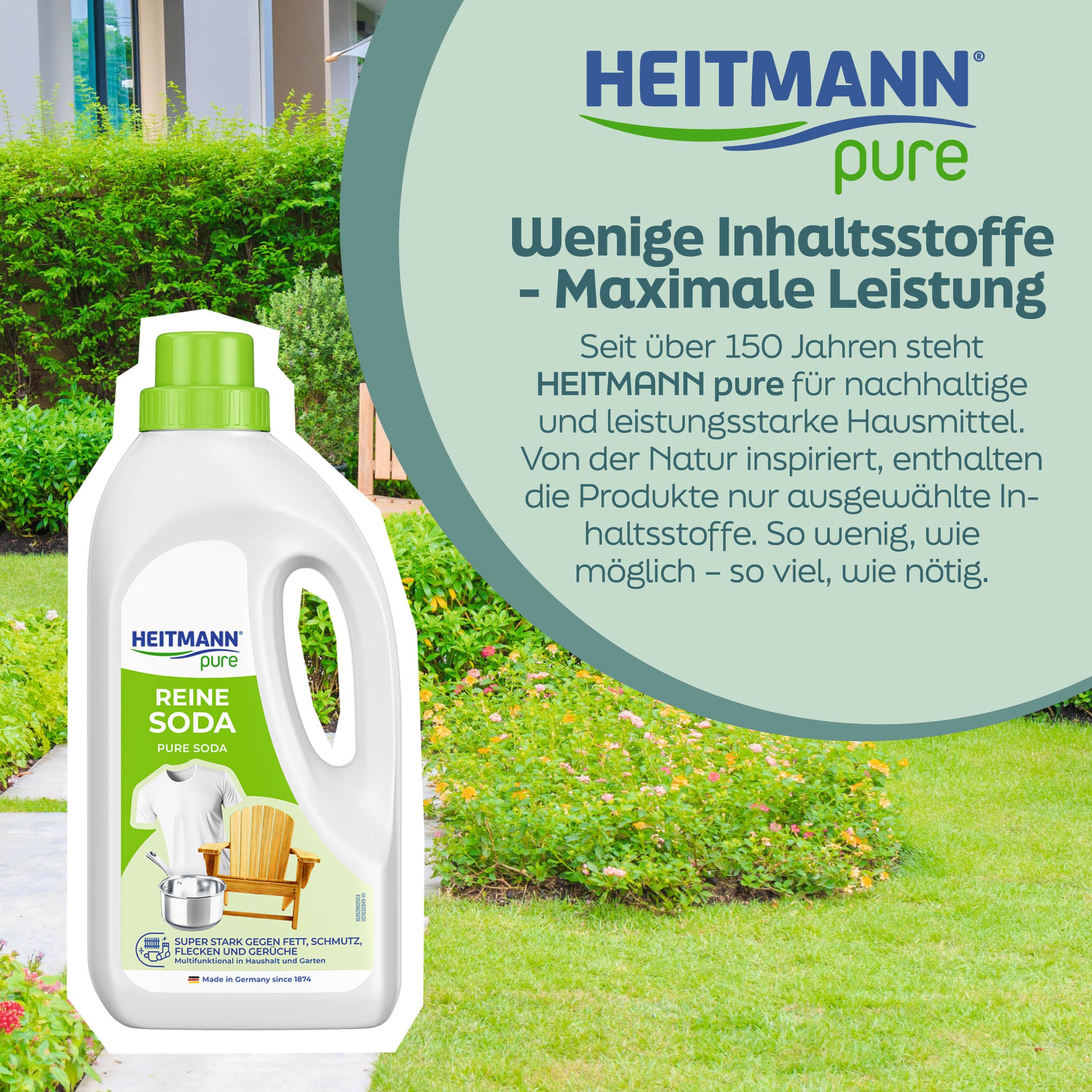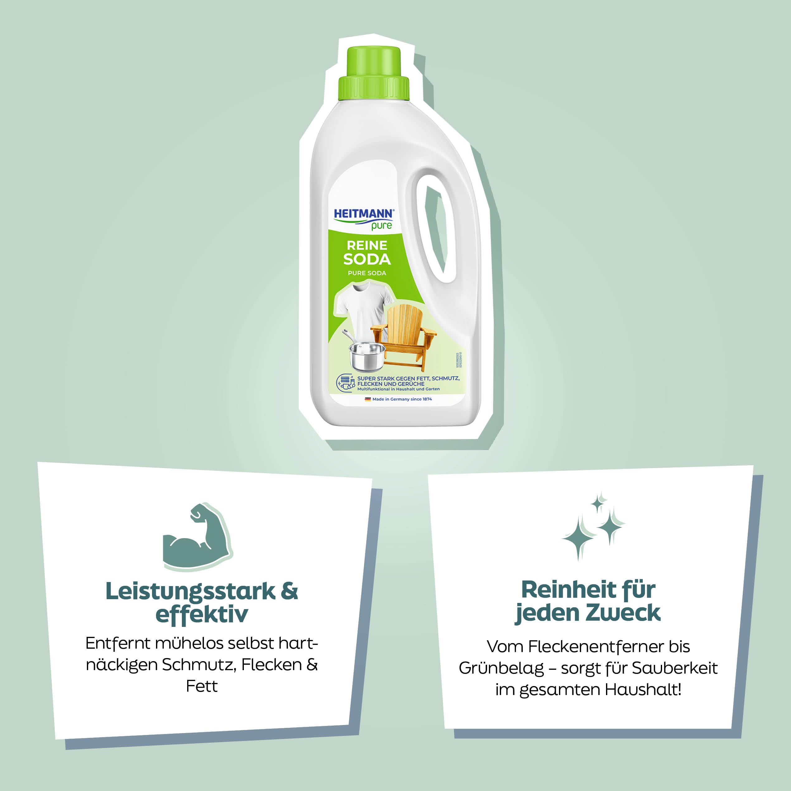 HEITMANN pure Reine Soda | Vielseitiger Reiniger für Fett, Schmutz, Flecken & Gerüche | Natürlich & umweltfreundlich | Für Haushalt & Garten | 1 L