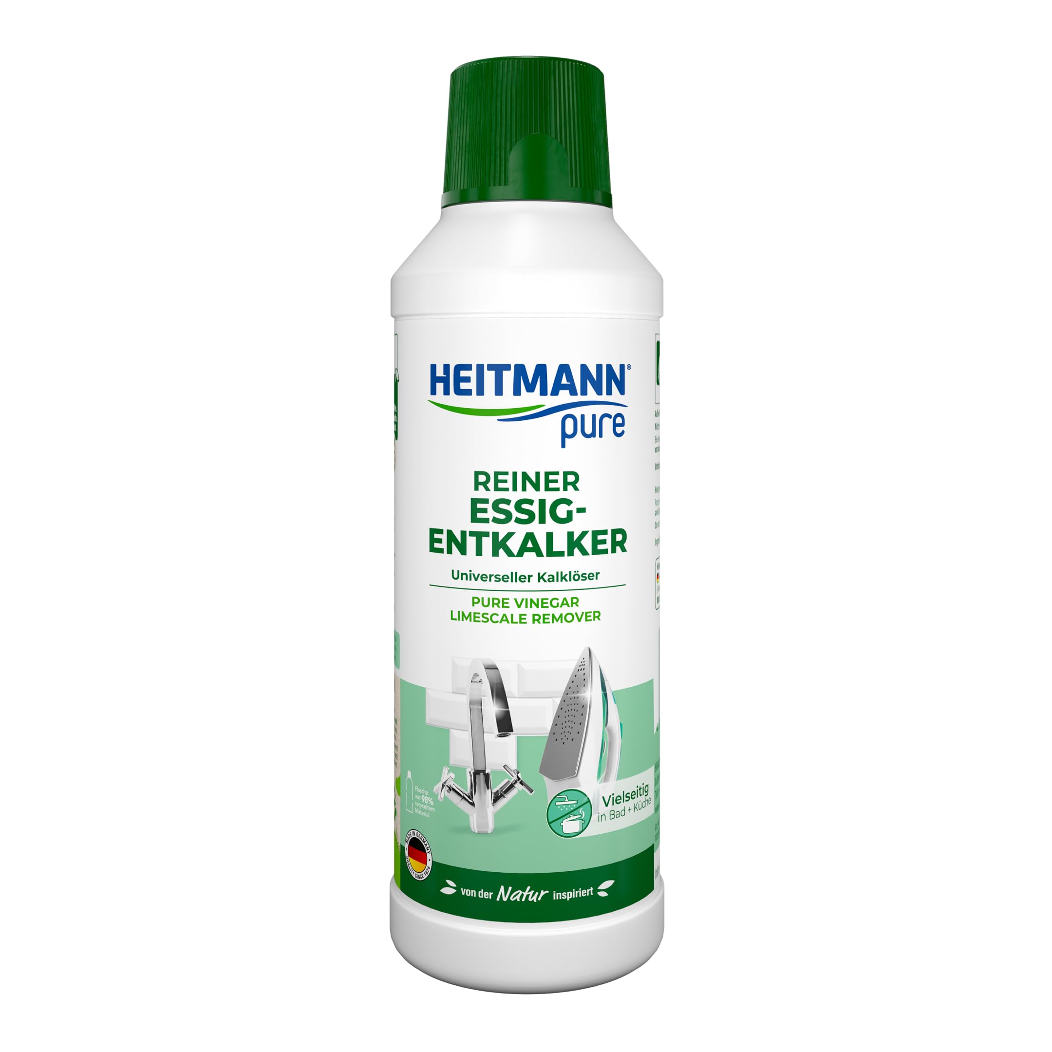 HEITMANN pure Reiner Essig-Entkalker | Kraftvoller Kalklöser für Küche & Bad | Frei von chemischen Zusätzen | Für Haushaltsgeräte und Oberflächen | 500 ml