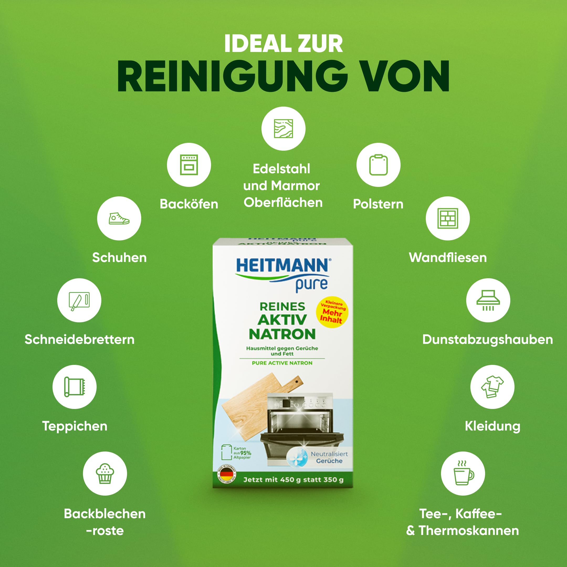 HEITMANN pure Reines Aktiv-Natron | Entfernt zuverlässig Fett, Gerüche und Flecken im ganzen Haushalt | 450 g
