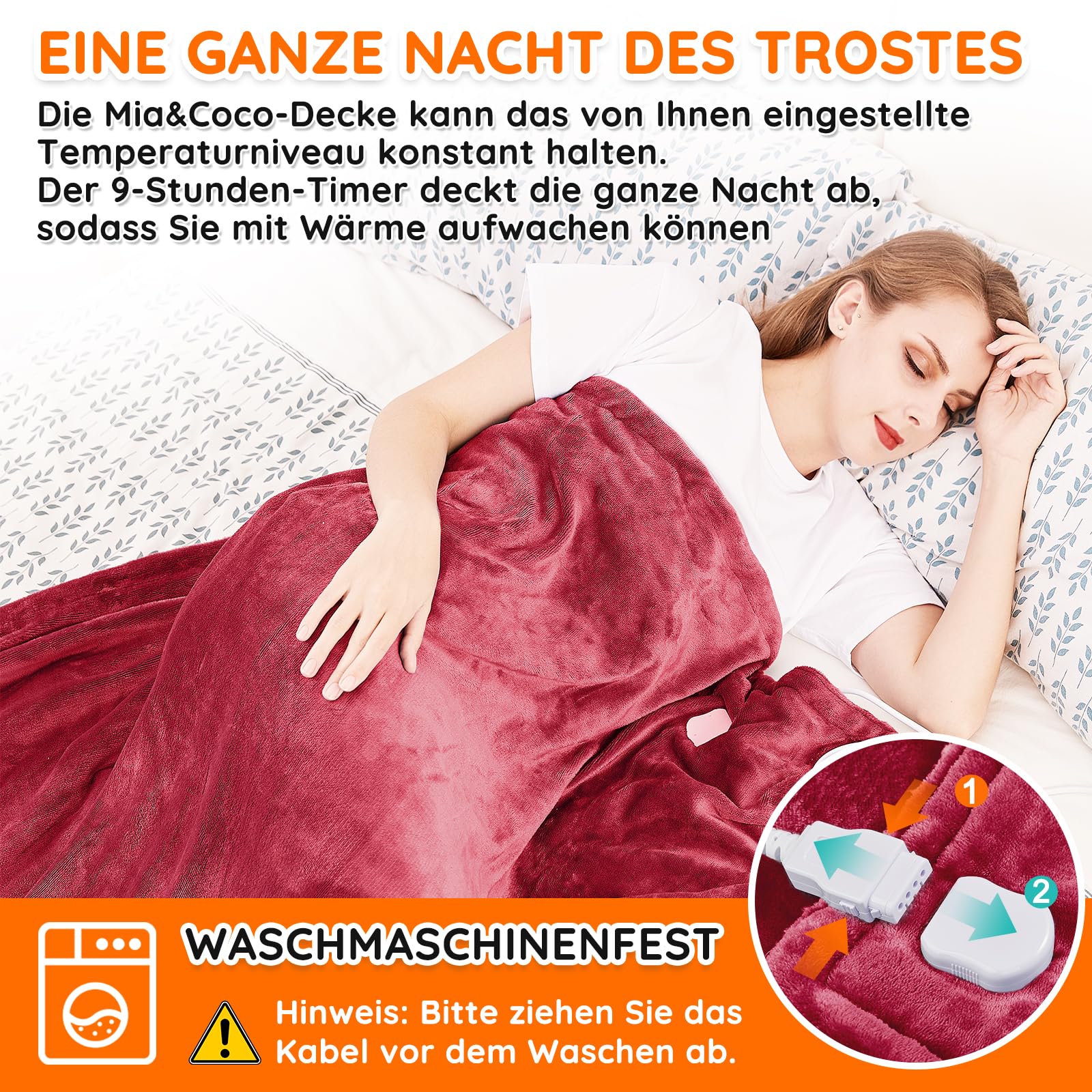 - ️ ️ ️ Maschinenwaschbar Sie können das Kabel entfernen und die Decke von Hand oder in der Waschmaschine waschen, indem Sie den Anweisungen des Benutzerhandbuchs folgen.