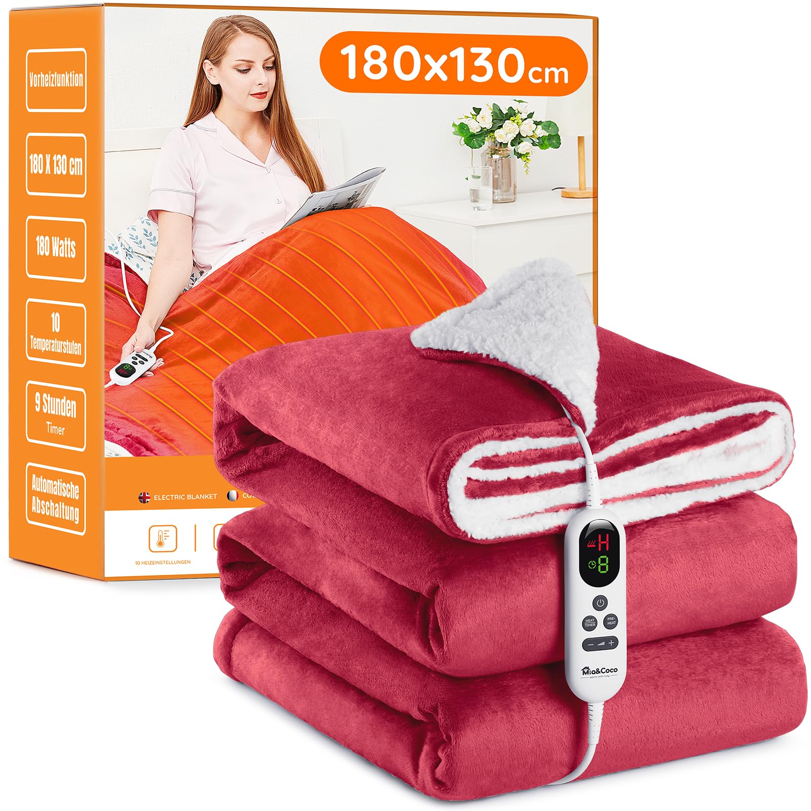 - Heizdecke für volle Wärme an kalten Tagen ️Die elektrisch beheizte Decke Mia & Coco verfügt über 10 Temperaturstufen und 9 Stunden Betriebszeit, sie besteht aus Flanell und Sherpa, damit Sie an Wintertagen angenehme Wärme geniessen können.