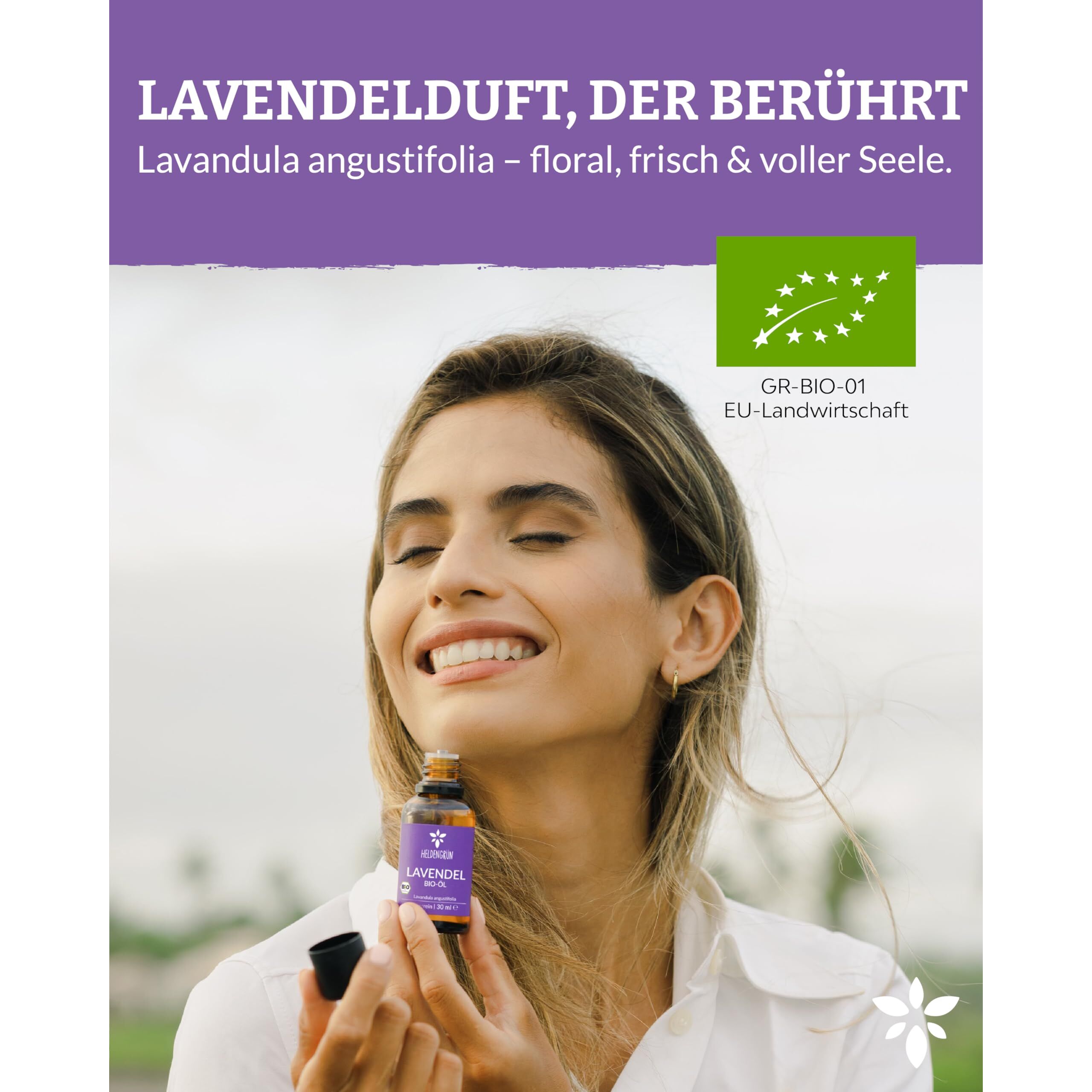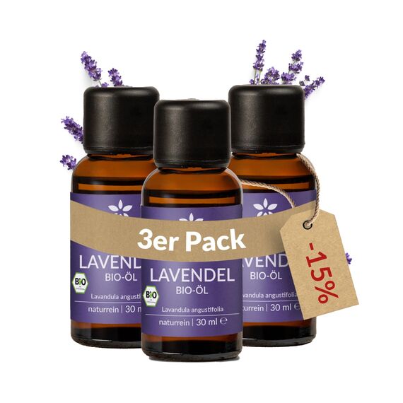 Heldengrün® BIO Lavendelöl [100% NATURREIN] - Der Echte Lavendel - Lavandula Angustifolia - Ätherisches Öl Bio - Duftöl Lavendel für Aromatherapie - 3 x 30 ml