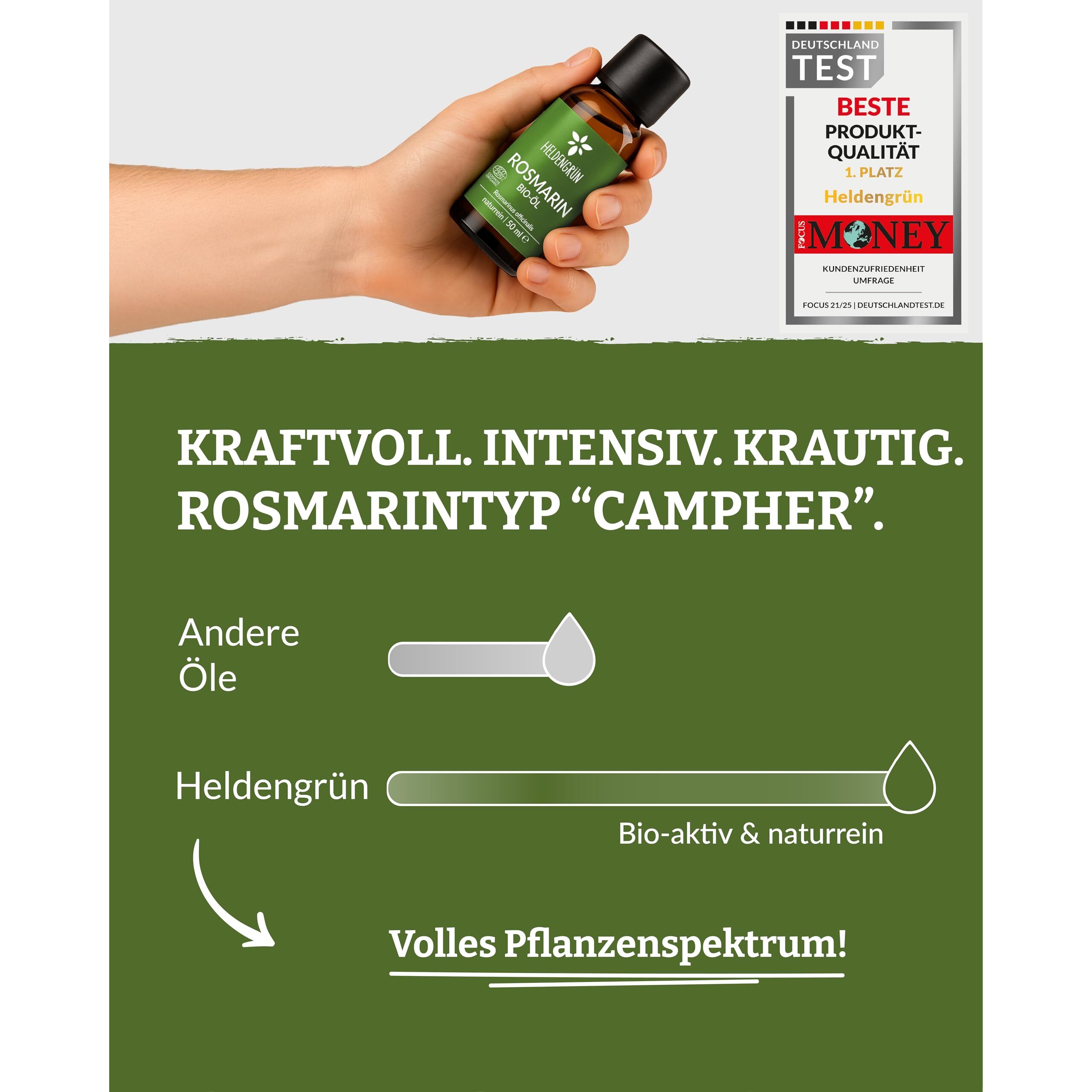 Heldengrün® BIO Rosmarinöl [HOCHDOSIERT] Natürlicher Haar-Booster - 100% naturreines Rosmarin Öl für Haare & Kopfhaut - Ätherisches Rosmarinöl Haare