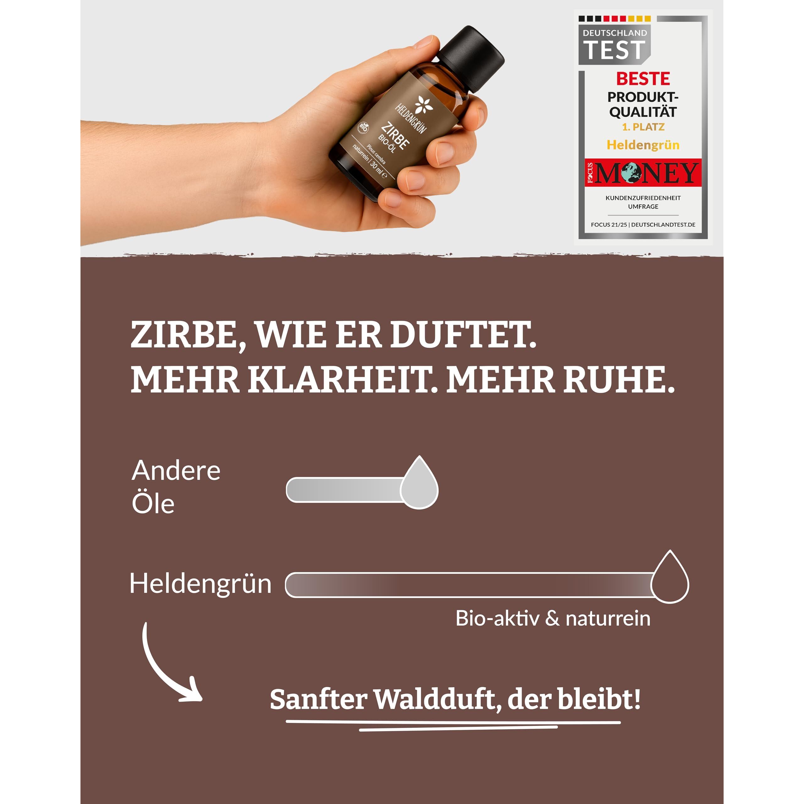 Heldengrün© Zirbenöl BIO [100% NATURREIN] - Echtes Zirbelkiefer Öl - Alpen Wildwuchs aus Österreich - Zirbenöl Ätherisches Öl - Zirbenöl für Diffusor - 3 x 30 ml
