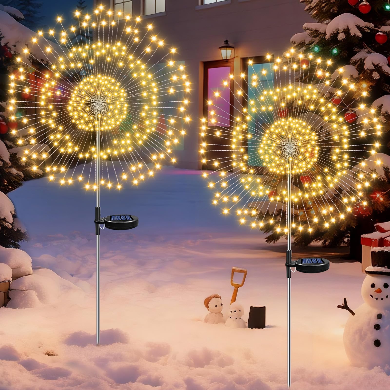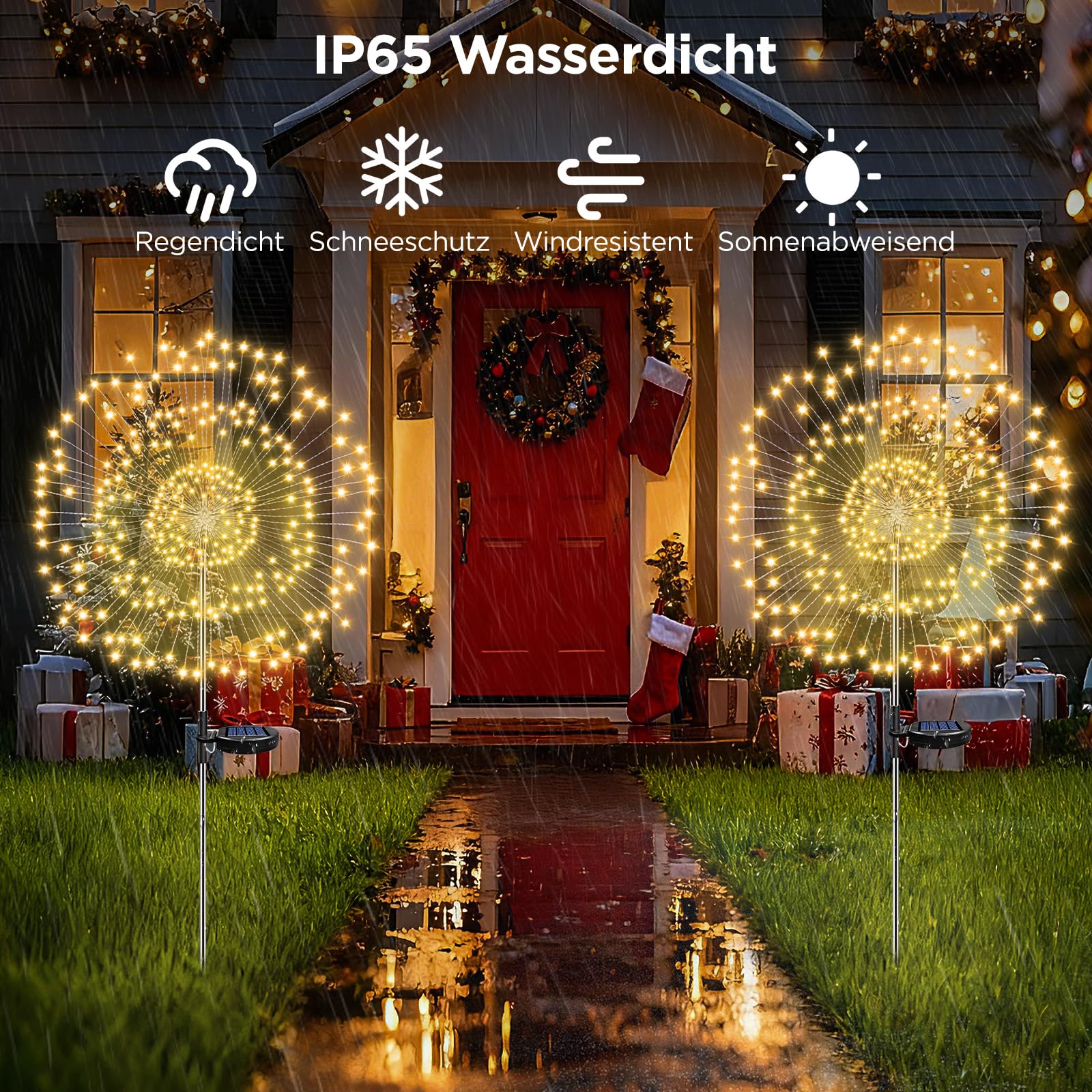 HELESIN Gartendeko Solar Gartenleuchte Aussen 2 Stück, 2 Modi Gartendeko Draussen Wetterfest, 120 LED Solarleuchten Feuerwerk, Solarlampen für Aussen für Wege, Hof Deko(Warmweiss)
