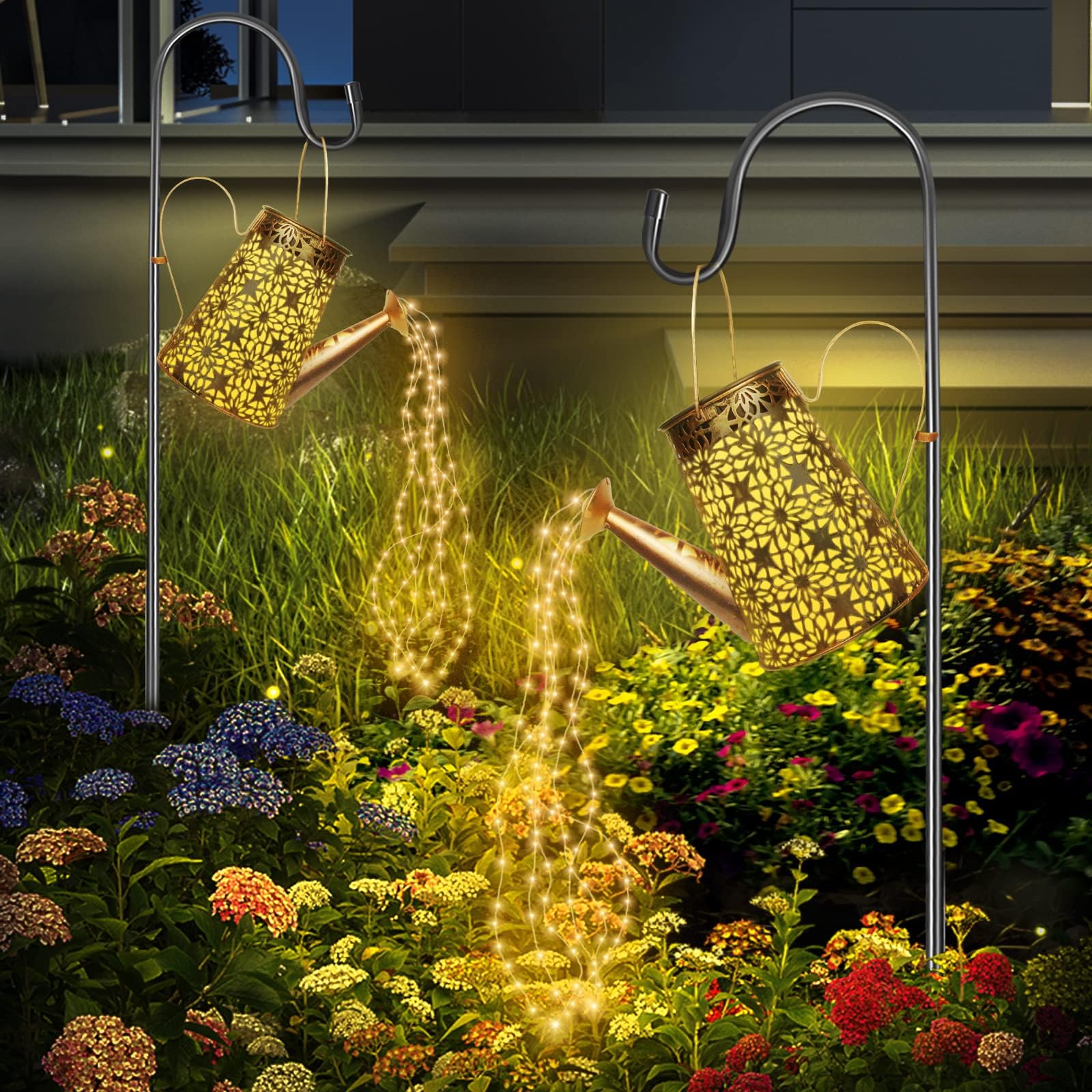 HELESIN Solarlampen mit Lichterkette Giesskanne Fairy Garden Light (2 Stück), LED Solar Giesskanne mit Lichterkette Aussen, Garten Kunst Lampe für Patio, Blumentopf und Rasen (Mit 2 Ständer)