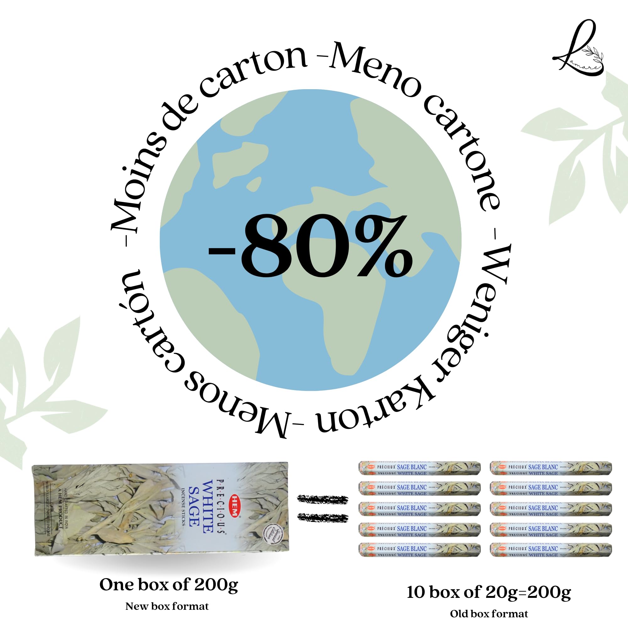 Hem White Sage Räucherstäbchen, 1 Packungen mit 200 g (160-180 Stäbchen), Aromatherapie, Meditation, Yoga, umweltfreundliche Verpackung