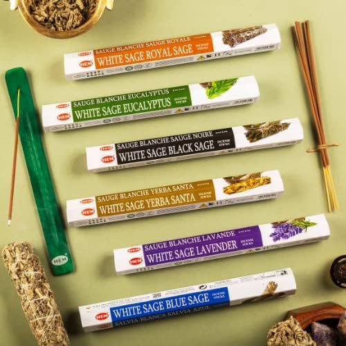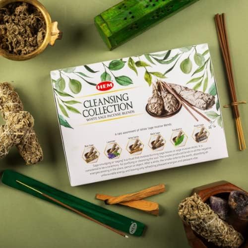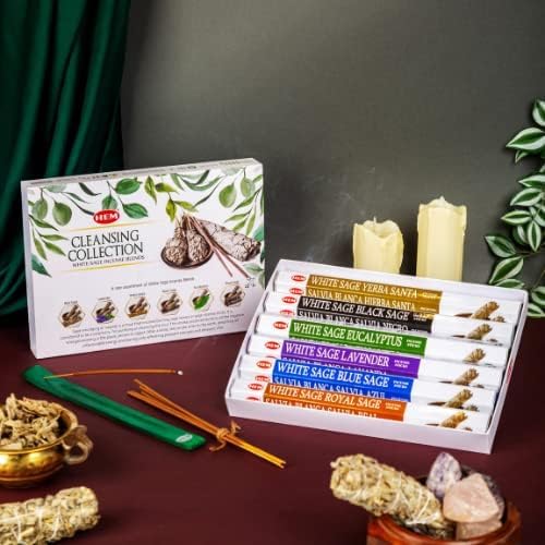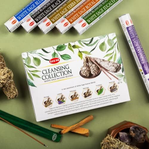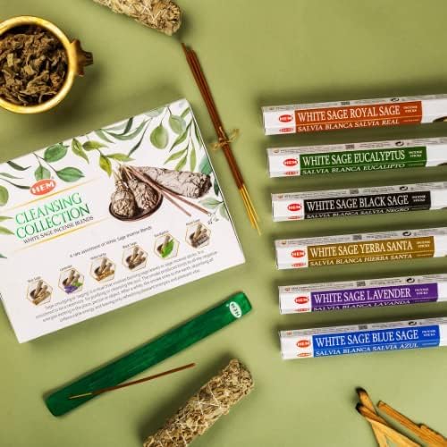 Hem Cleansing Collection White Sage: Blue Sage, Lavender, Holy Grass, Black Sage, Eucalyptus, Royal Sage - Includes Stick Stand