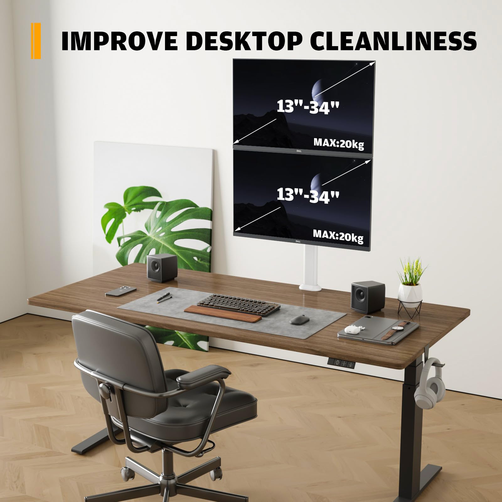 Hemudu Gelenkiger Desktop-Montagearm für Zwei Monitore Vertikaler Bildschirmständer für Zwei 13- bis 34-Zoll-Computermonitore mit C-Klemme
