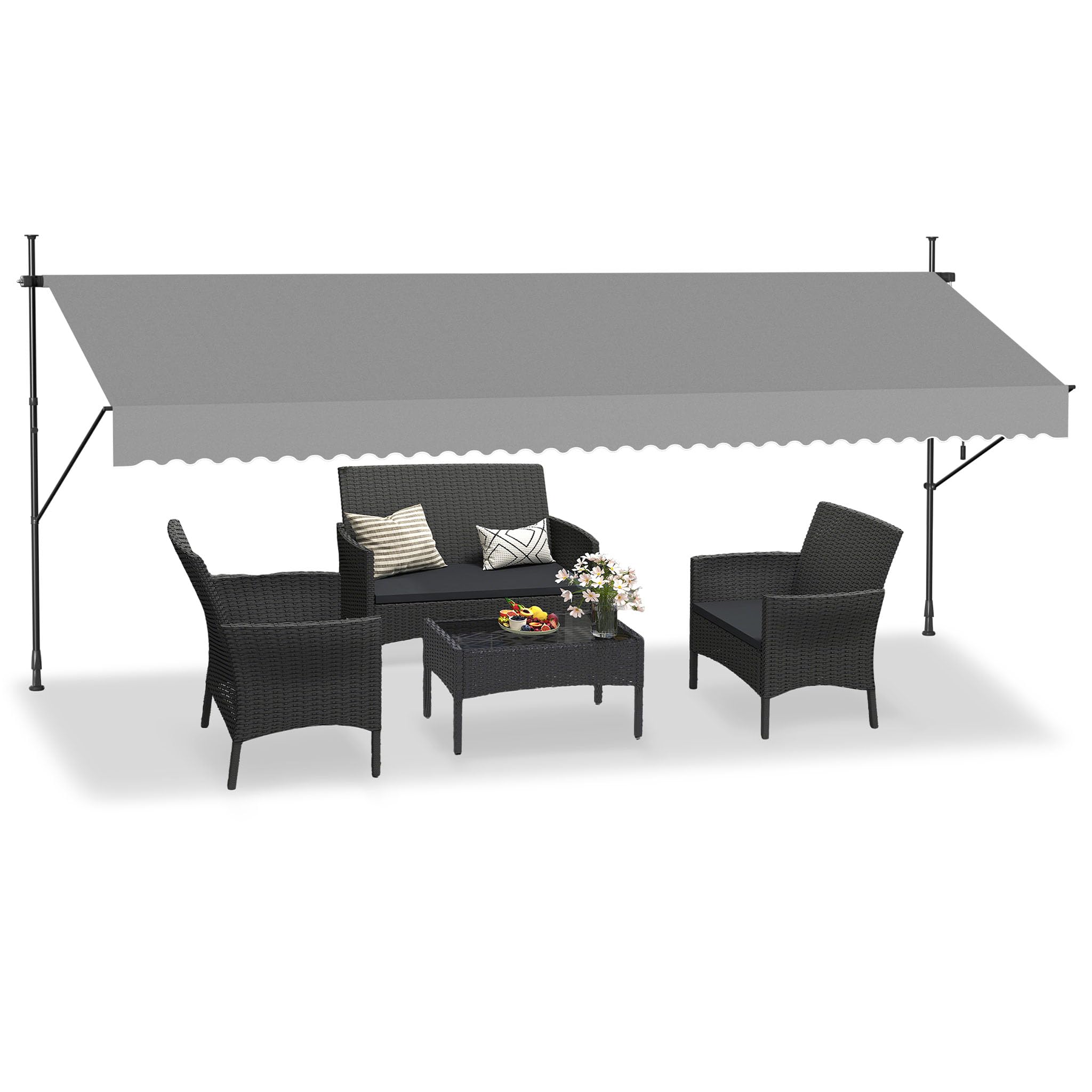 Lieferumfang:Markise mit KurbelAufbauanleitung*Verwenden Sie das Produkt nicht bei starkem Regen oder starkem Wind.