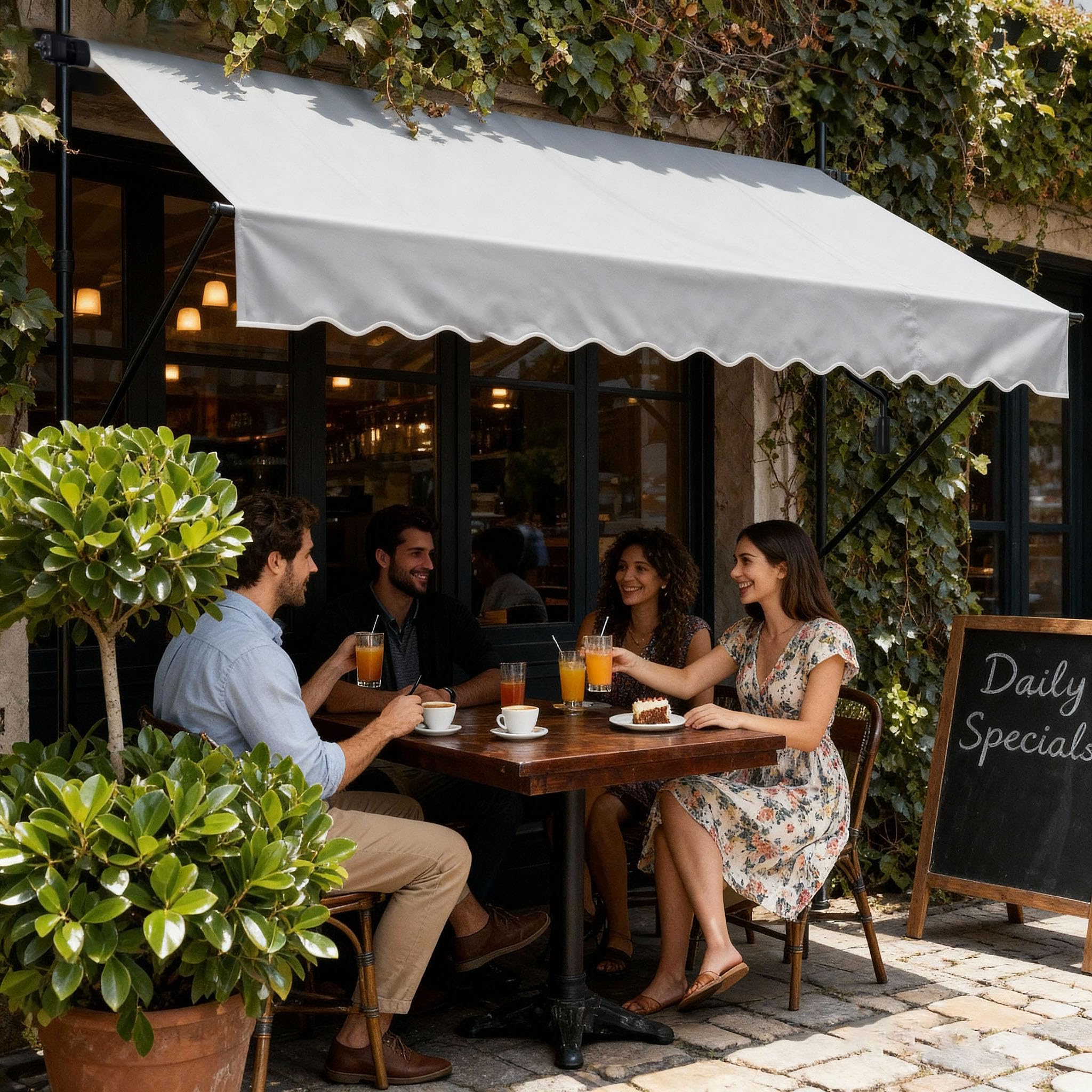 Beschreibung:Offene Gelenkarmmarkise schützt ideal gegen Sonneneinstrahlung.Die Markise ist der ideale Schattenspender für heisse Sommertage. Schnell montiert und variabel verstellbar bietet sie ausreichend Schatten.Aufgrund einer robusten stehlen konstruktion ist sie sehr stabil und langlebig.Höhenverstellbar: Passen Sie die Höhe der Markise individuell an Ihre Bedürfnisse an und geniessen Sie optimalen Sonnenschutz auf Ihrer Terrasse oder Ihrem Balkon.Kompakte und stabile Bauweise.Verbesserte Schmutz- und Staubabweisung durch PU Beschichtung.Wasserabweisend imprägniert.Einfache Klemmmontage: Unsere Klemmmarkise lässt sich ohne Bohren montieren und bietet so eine schnelle und unkomplizierte Lösung; ideal auch für Mietwohnungen geeignet