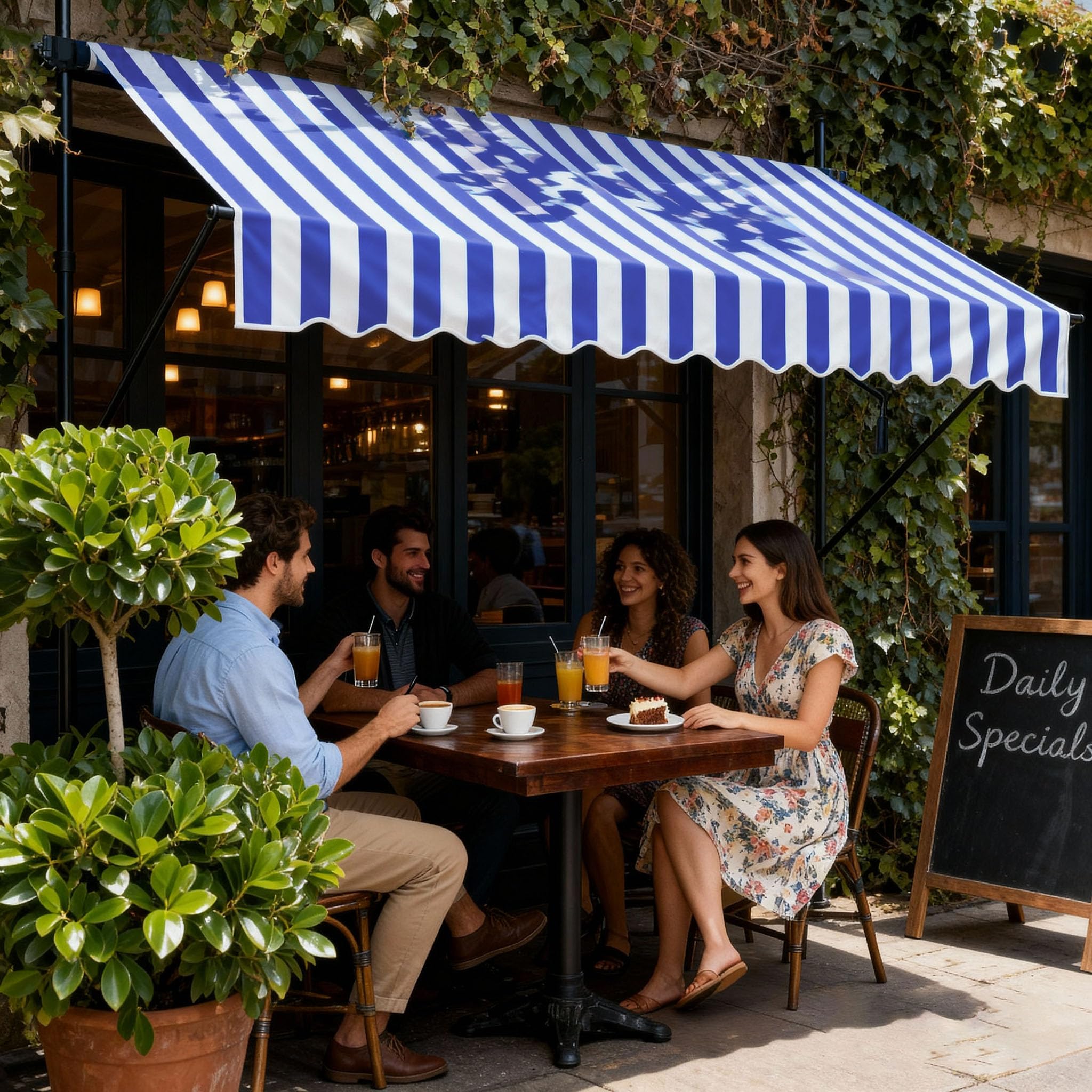 Beschreibung:Offene Gelenkarmmarkise schützt ideal gegen Sonneneinstrahlung.Die Markise ist der ideale Schattenspender für heisse Sommertage. Schnell montiert und variabel verstellbar bietet sie ausreichend Schatten.Aufgrund einer robusten stehlen konstruktion ist sie sehr stabil und langlebig.Höhenverstellbar: Passen Sie die Höhe der Markise individuell an Ihre Bedürfnisse an und geniessen Sie optimalen Sonnenschutz auf Ihrer Terrasse oder Ihrem Balkon.Kompakte und stabile Bauweise.Verbesserte Schmutz- und Staubabweisung durch PU Beschichtung.Wasserabweisend imprägniert.Einfache Klemmmontage: Unsere Klemmmarkise lässt sich ohne Bohren montieren und bietet so eine schnelle und unkomplizierte Lösung; ideal auch für Mietwohnungen geeignet