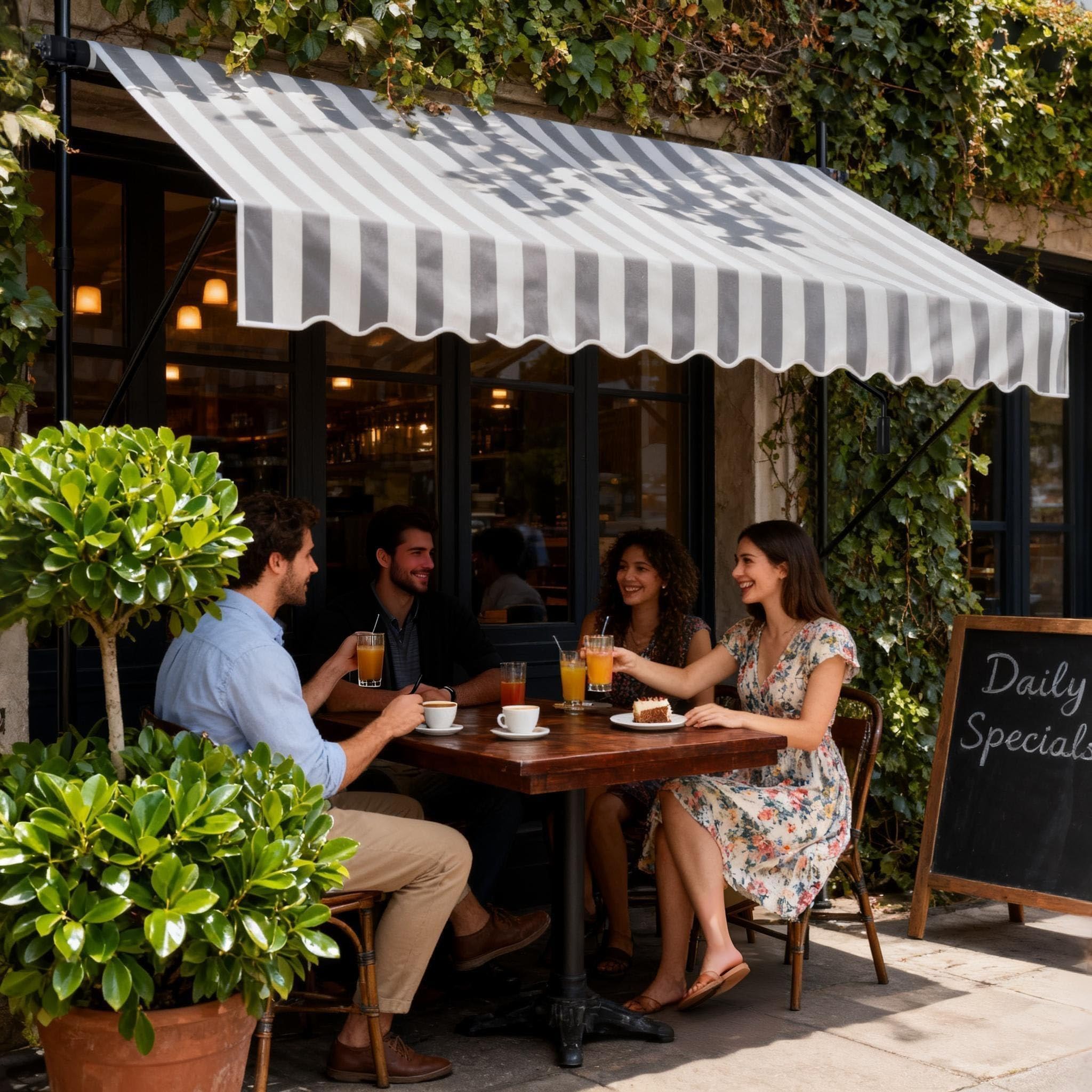 Beschreibung:Offene Gelenkarmmarkise schützt ideal gegen Sonneneinstrahlung.Die Markise ist der ideale Schattenspender für heisse Sommertage. Schnell montiert und variabel verstellbar bietet sie ausreichend Schatten.Aufgrund einer robusten stehlen konstruktion ist sie sehr stabil und langlebig.Höhenverstellbar: Passen Sie die Höhe der Markise individuell an Ihre Bedürfnisse an und geniessen Sie optimalen Sonnenschutz auf Ihrer Terrasse oder Ihrem Balkon.Kompakte und stabile Bauweise.Verbesserte Schmutz- und Staubabweisung durch PU Beschichtung.Wasserabweisend imprägniert.Einfache Klemmmontage: Unsere Klemmmarkise lässt sich ohne Bohren montieren und bietet so eine schnelle und unkomplizierte Lösung; ideal auch für Mietwohnungen geeignet