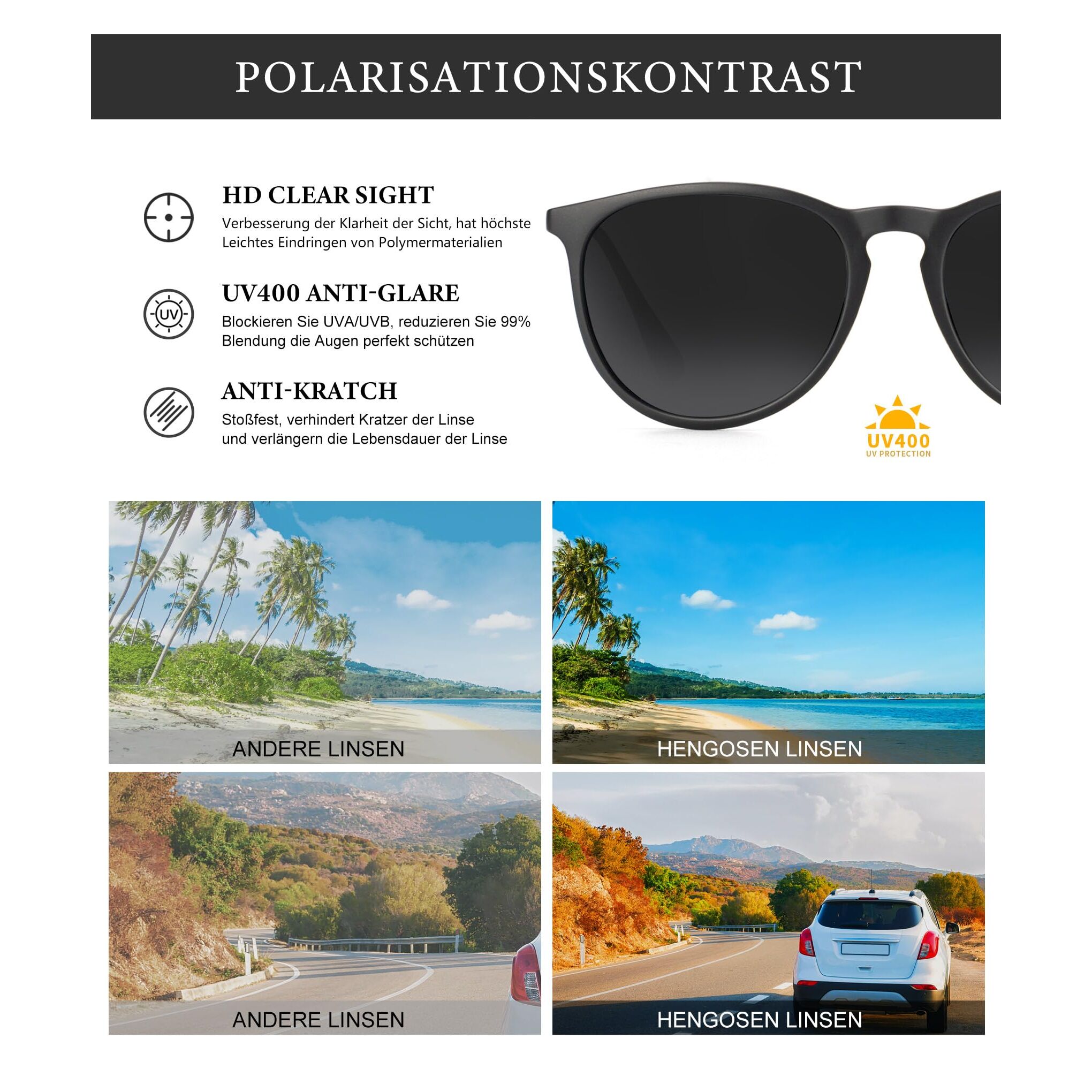 HENGOSEN Sonnenbrille Damen Polarisiert Sunglasses-Woman: Polarisiert Sonnenbrille Damen Retro UV Schutz Vintage Sunglasses