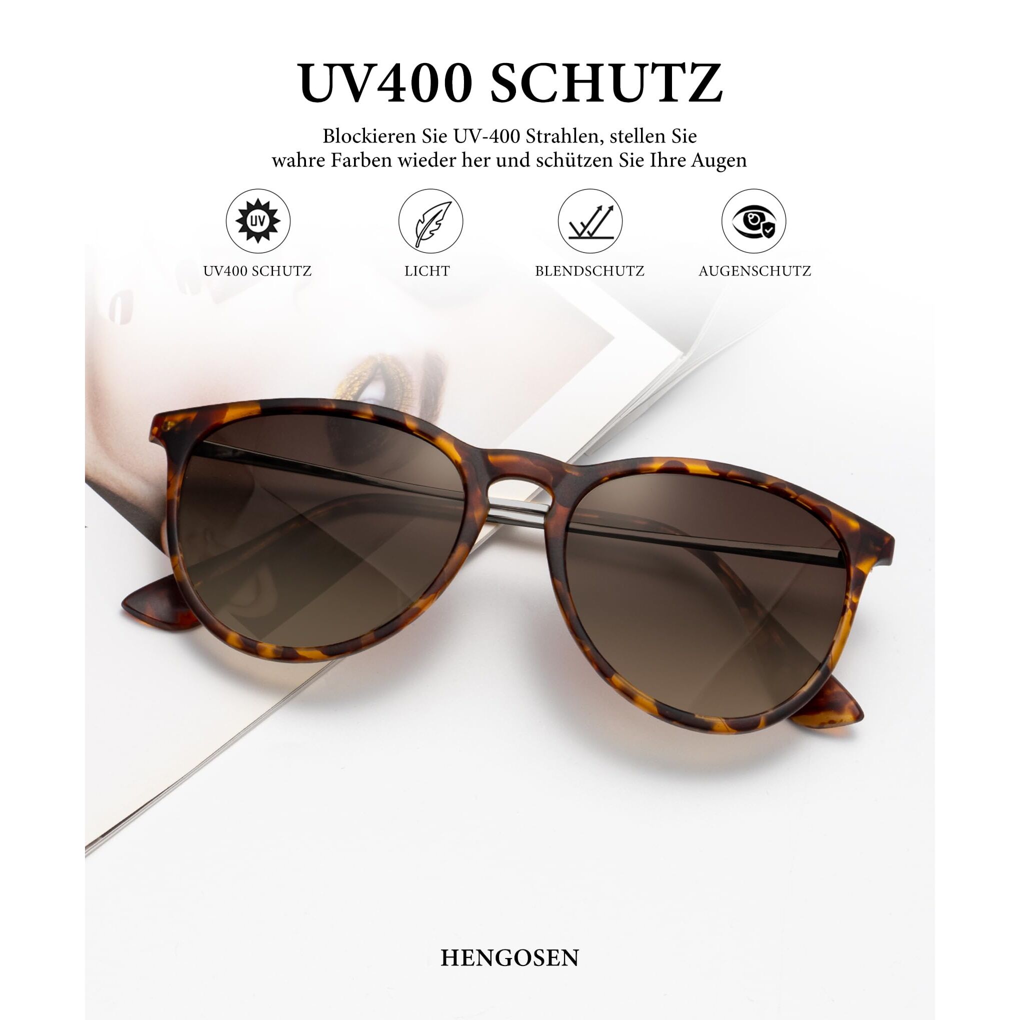 Die HENGOSEN Sunglasses für Frauen sind nicht nur stilvoll und grosszügig, sondern zeichnen sich durch hervorragende Qualität, Haltbarkeit und Zuverlässigkeit aus. Sie bestehen aus einer leichten Legierung Rahmen, UV-Schutz und HD-Durchlässigkeit, bieten einen sicheren und bequemen Tragschluss und halten Ihren Sinn für Mode bei, während Ihre Augen vor Schäden geschützt werden. Mit ihrem runden Retro-Design passen sie sich jeder Gesichtsform an und kommen in einer schönen Box mit allen Notwendigkeiten zum Einheit. Diese Sonnenbrille ist für jede Gelegenheit geeignet und wird mit einer lebenslangen Garantie geliefert.