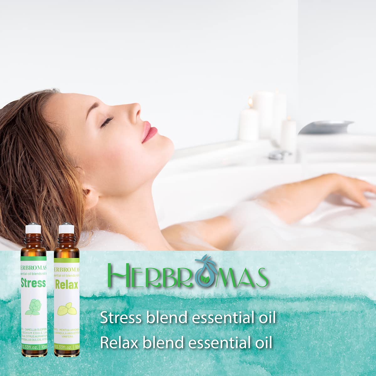 HERBROMAS-Aromatherapie ätherische Öle Roll On Set, gebrauchsfertige natürliche vorgetrübte ätherische Ölmischung, Entspannung Geschenk für Frauen und Männer, 6-Pack x 10ml für den Heimgebrauch