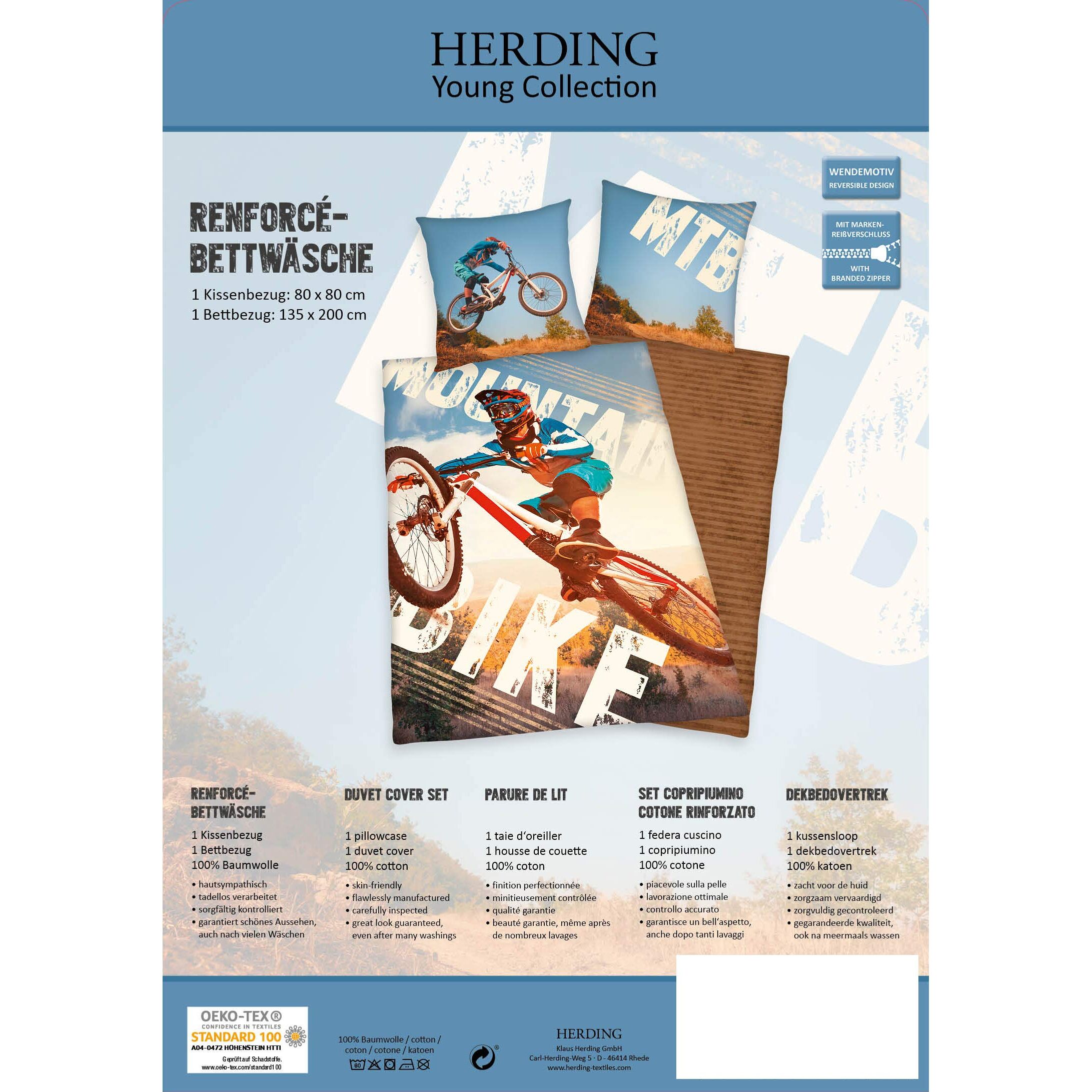 Herding YOUNG COLLECTION Bettwäsche-Set, Mountainbike Wendemotiv, Bettbezug 135 x 200 cm, Kopfkissenbezug 80 x 80 cm, Baumwolle/Renforcé