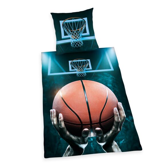 Die ideale Geschenkidee für jeden Anlass: Atmungsaktive Jugendbettwäsche mit coolem Basketball Wendemotiv für junge Sportler - Jugendliches 2-teiliges Set: Abwechslungsreiches Design dank Wendekopfkissenbezug mit detailreichen Motiven und Wendebettbezug mit Flach- und Rotationsdruck - Schnelles und einfaches Beziehen: Kissen- und Bettbezug mit leichtläufigem Reissverschluss - Hochwertiges Material: 100% Baumwolle/Renforcé, Produziert nach Oeko Tex Standard 100, Kräftige Farben, Pflegeleicht: Waschbar bei 60°C, Trocknergeeignet - Lieferumfang: 1 Herding Bettwäsche-Set, Young Collection, 1 Kopfkissenbezug 70 x 90 cm + 1 Bettdeckenbezug 140 x 200 cm, Farbe: Mehrfarbig