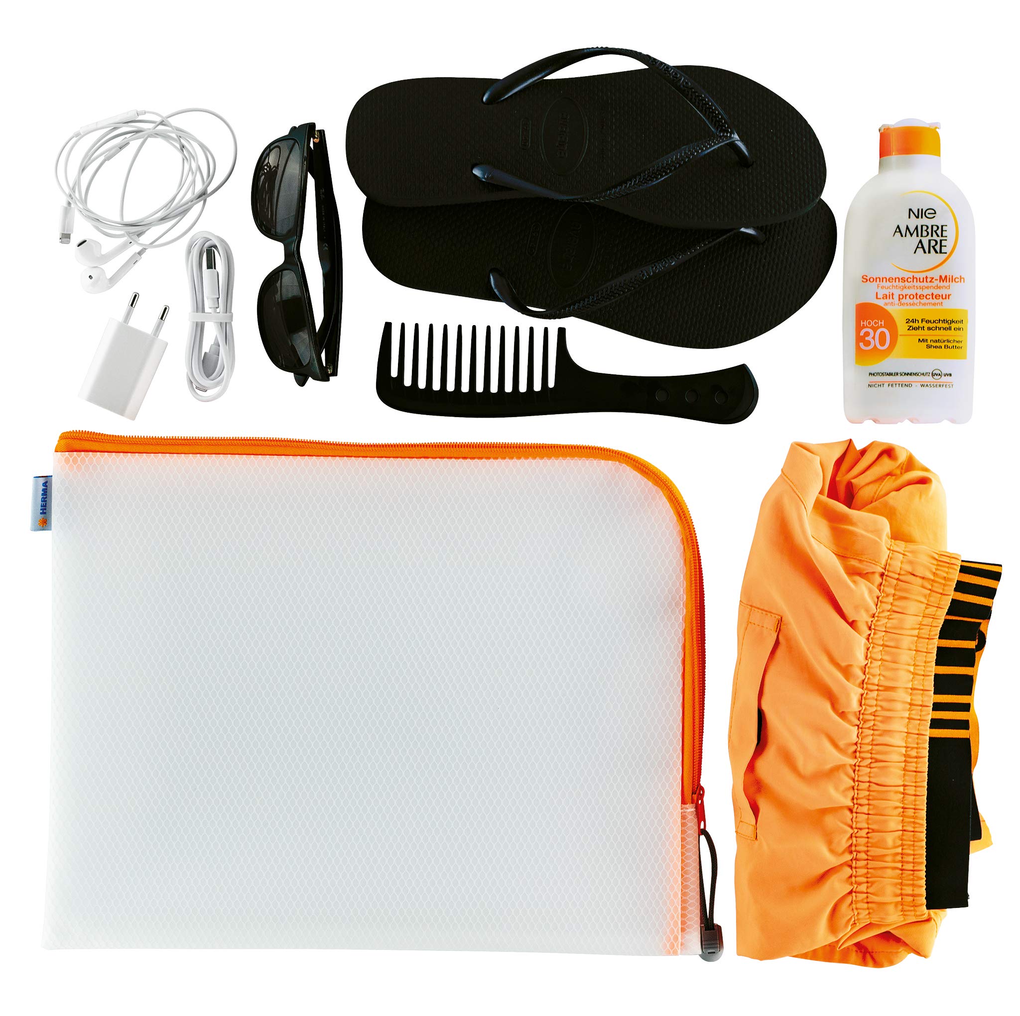 HERMA Dokumententasche A4 mit Reißverschluss, große wasserdichte Reißverschlusstasche, verschließbare Dokumentenmappe aus Kunstoff mit Zipper, halb-transparent, 36 x 28 cm, orange