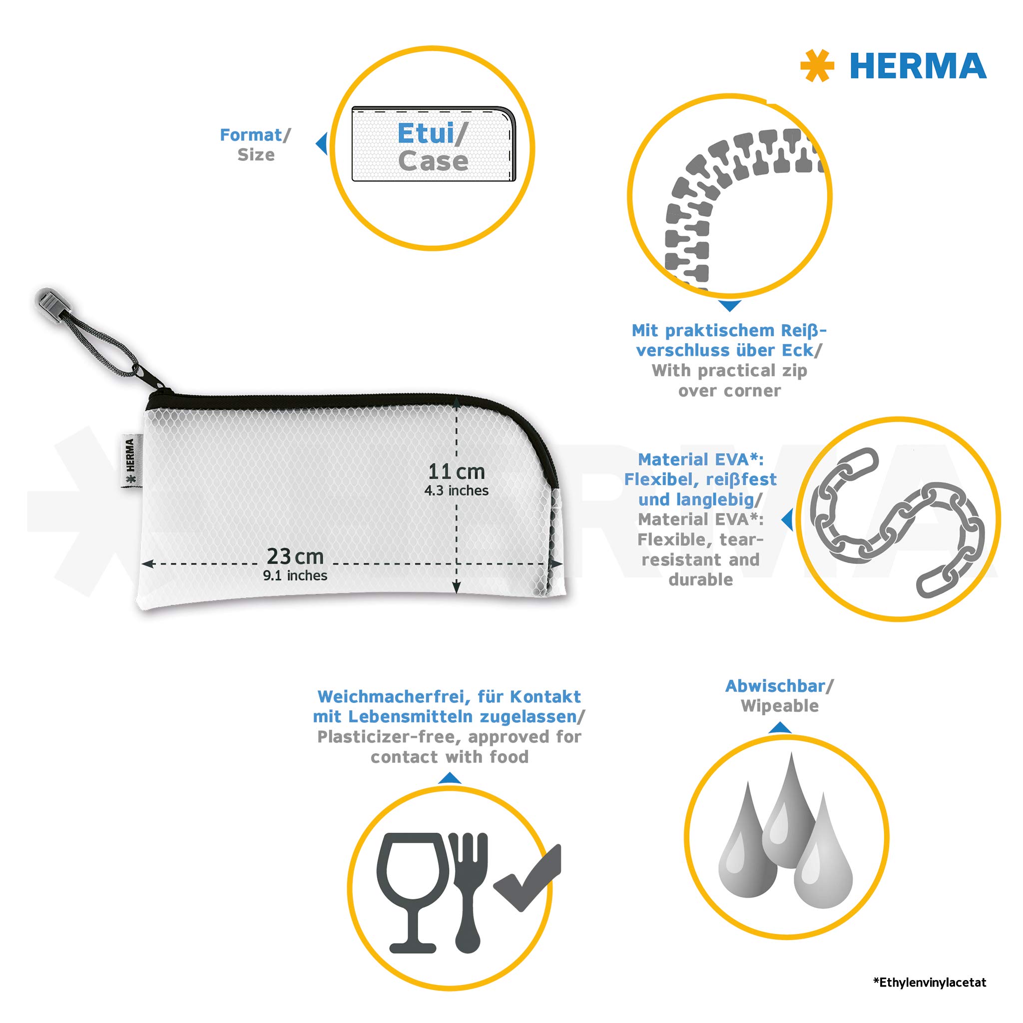 HERMA Dokumententasche mit Reissverschluss – Wasserdichte Kunststoffmappe, 23 × 11 cm, Orange