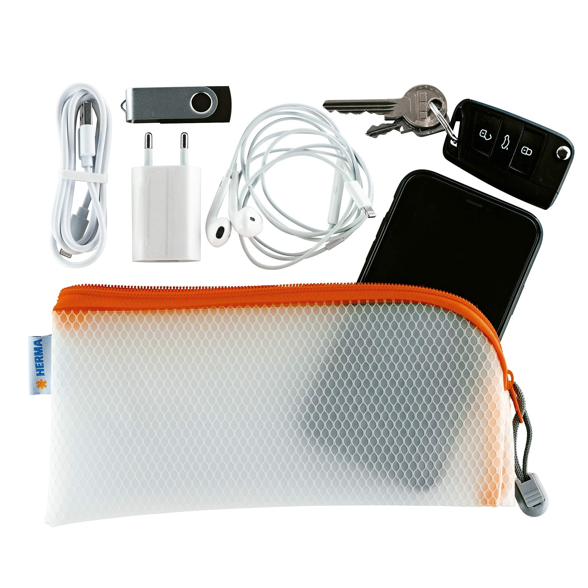 HERMA Dokumententasche mit Reißverschluss, kleine wasserdichte Reißverschlusstasche, verschließbare Dokumentenmappe aus Kunstoff mit Zipper, halb-transparent, 23 x 11 cm, orange