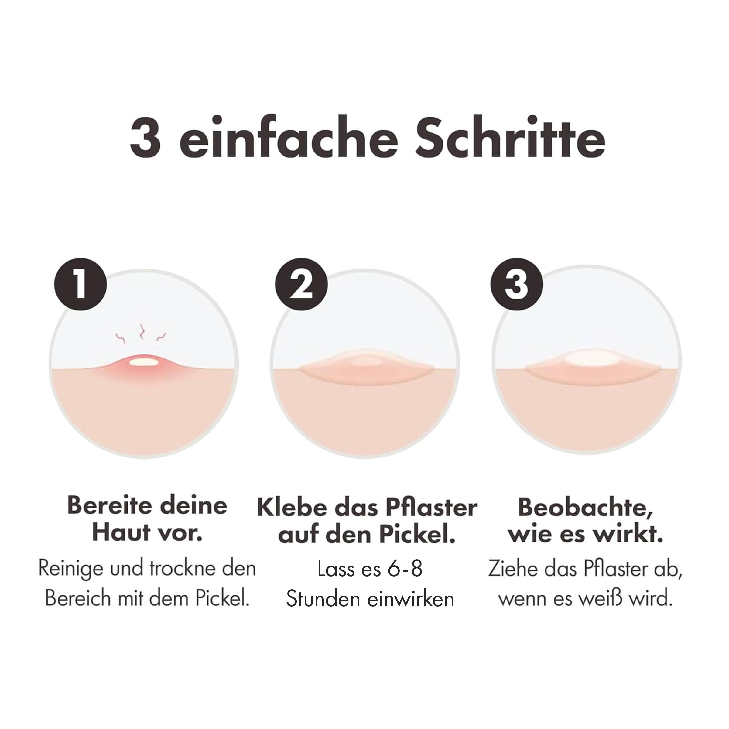 Durch die schützende Wirkung wird verhindert, dass Pickel beruehrt oder aufgekratzt werden, was das Risiko von Entzuendungen, Roetungen und Pickelmalen verringern kann. Die Anwendung ist einfach, hygienisch und ideal fuer alle, die eine schnelle und effektive Anti-Pickel-Pflege suchen.