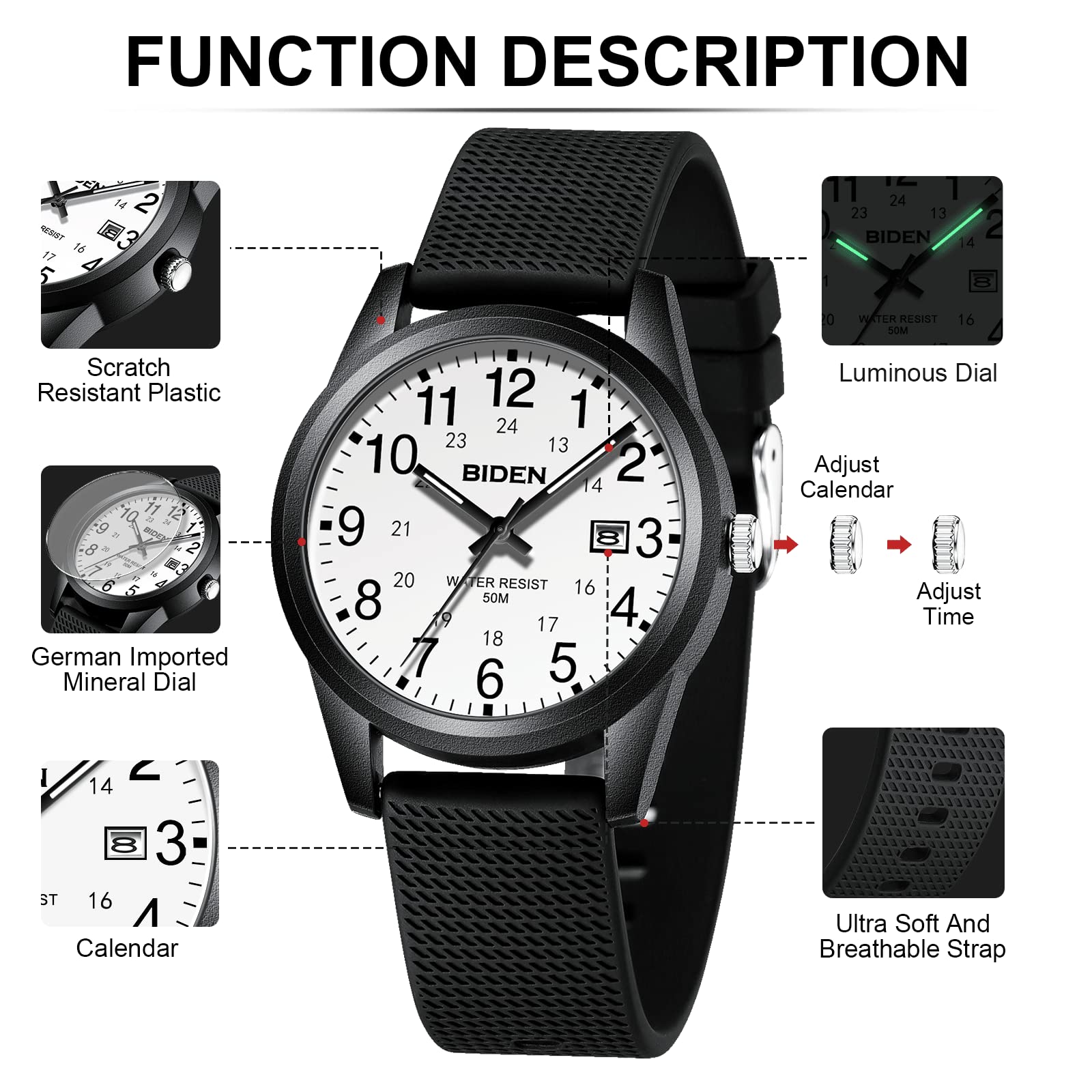 Herren-Armbanduhr: Diese Herrenuhr passt zu allen Gelegenheiten, sowohl formell als auch lässig. Tragen Sie diese Uhr auf Reisen, sei es für Business, Indoor- und Outdoor-Aktivitäten oder den täglichen Gebrauch. Geeignet für die meisten Gelegenheiten, Sport, Outdoor und Alltagsmode. Als Geburtstagsgeschenk, Weihnachtsgeschenk usw. für Sie oder Ihre Liebsten. Die Armbanduhr von BIDEN ist ein perfektes Geschenk für Sie und Ihre Liebsten.