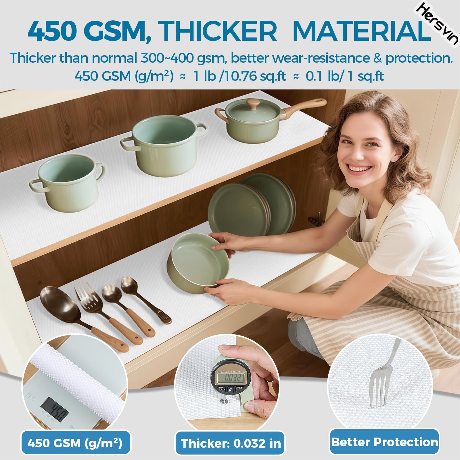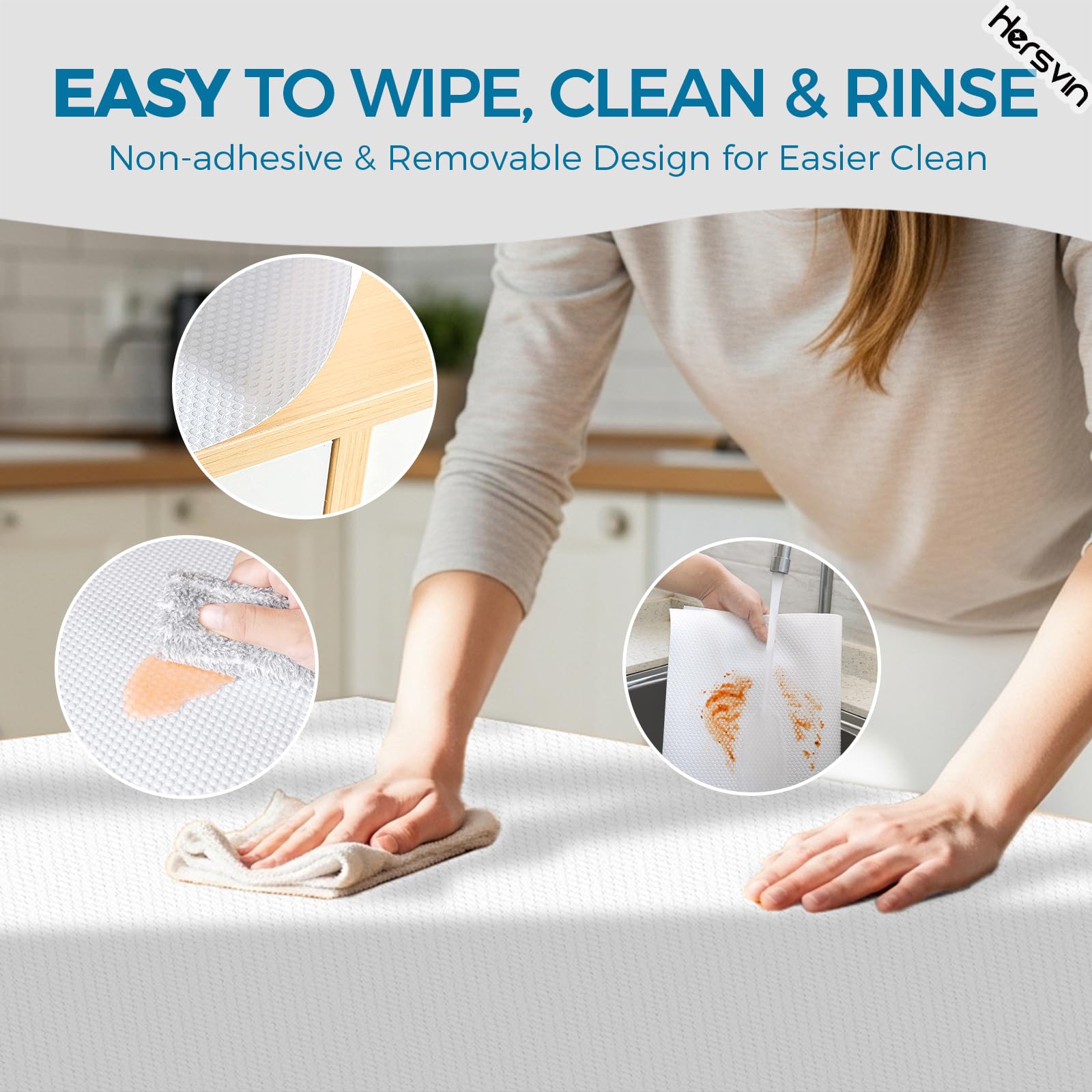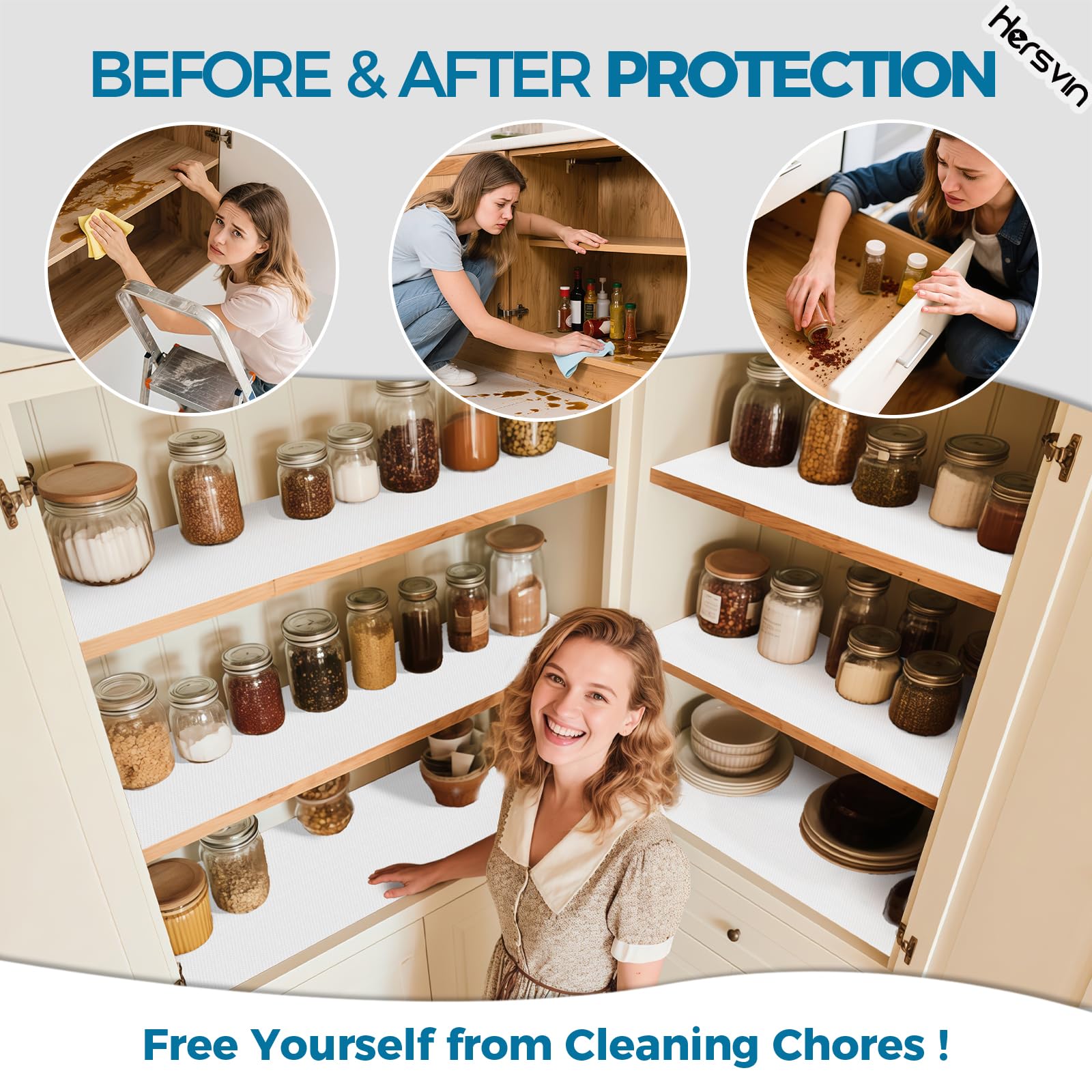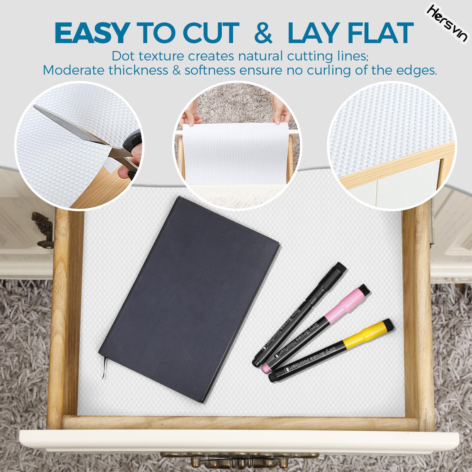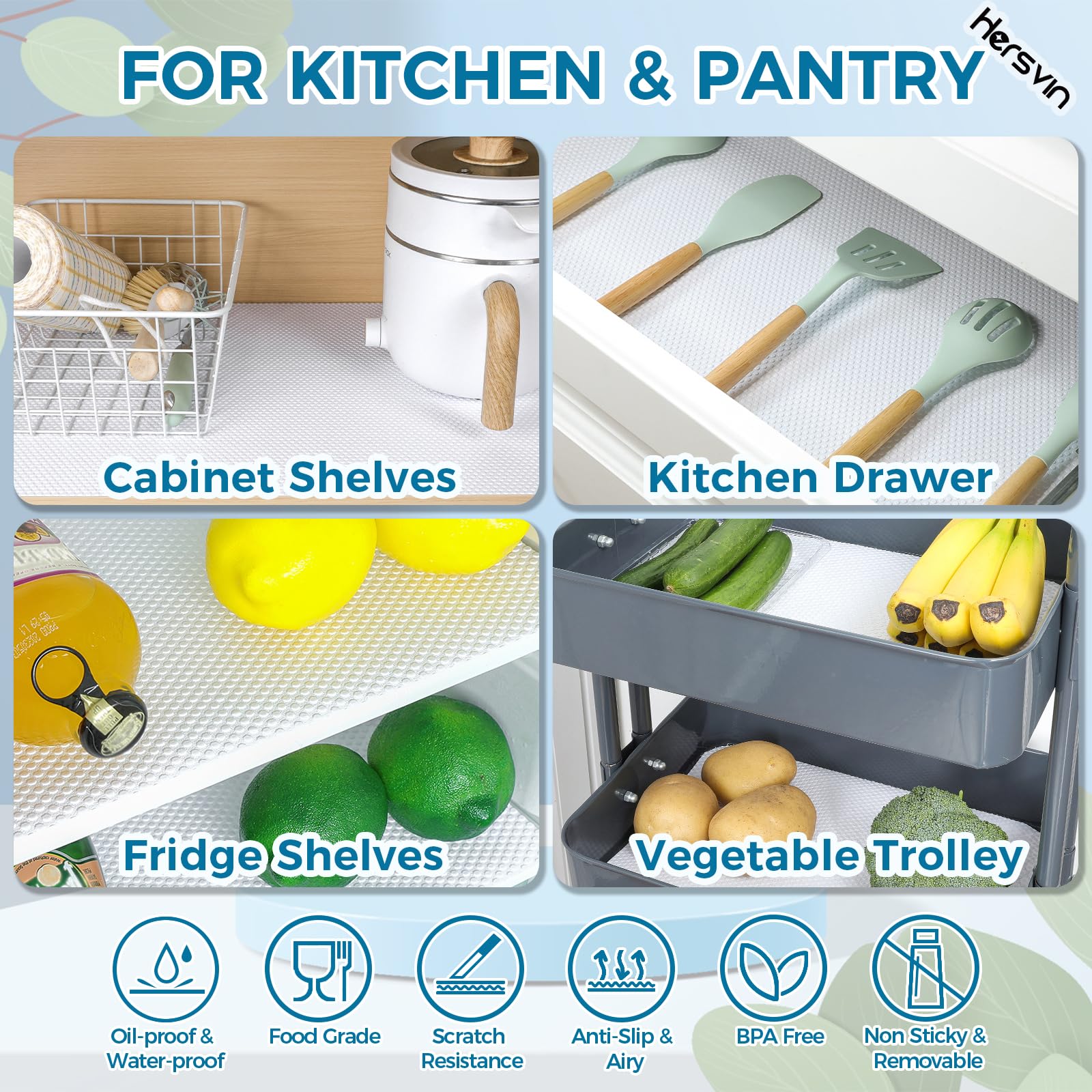 Verschwenden Sie immer noch Ihre Zeit mit Ihrer Hausarbeit? Sind Sie es leid, die Oberfläche Ihrer Schränke oder Ihre Kühlschränke und Waschküche zu reinigen? Hersvin EVA-Regaleinlage kann Ihr Problem lösen und wertvolle Zeit sparen. Halten Sie Ihre aufbewahrten Gegenstände und Regale sauber und geschützt. Sie sind ideal zum Schutz von Glas, Holz, Kunststoffoberflächen und anderen. Sie können in Ihren Schränken, Speisekammern, Kühlschränken, Waschküchen, Büros und Autos verwendet werden. Sie müssen die geschützten Oberflächen nie wieder abwischen. Wenn die Liner schmutzig werden, können Sie sie einfach waschen und dann wiederverwenden. Mit zugeschnittenem Muster ist es einfach, in Stücke zu schneiden und passt in jede Grösse von Schublade und Regal.