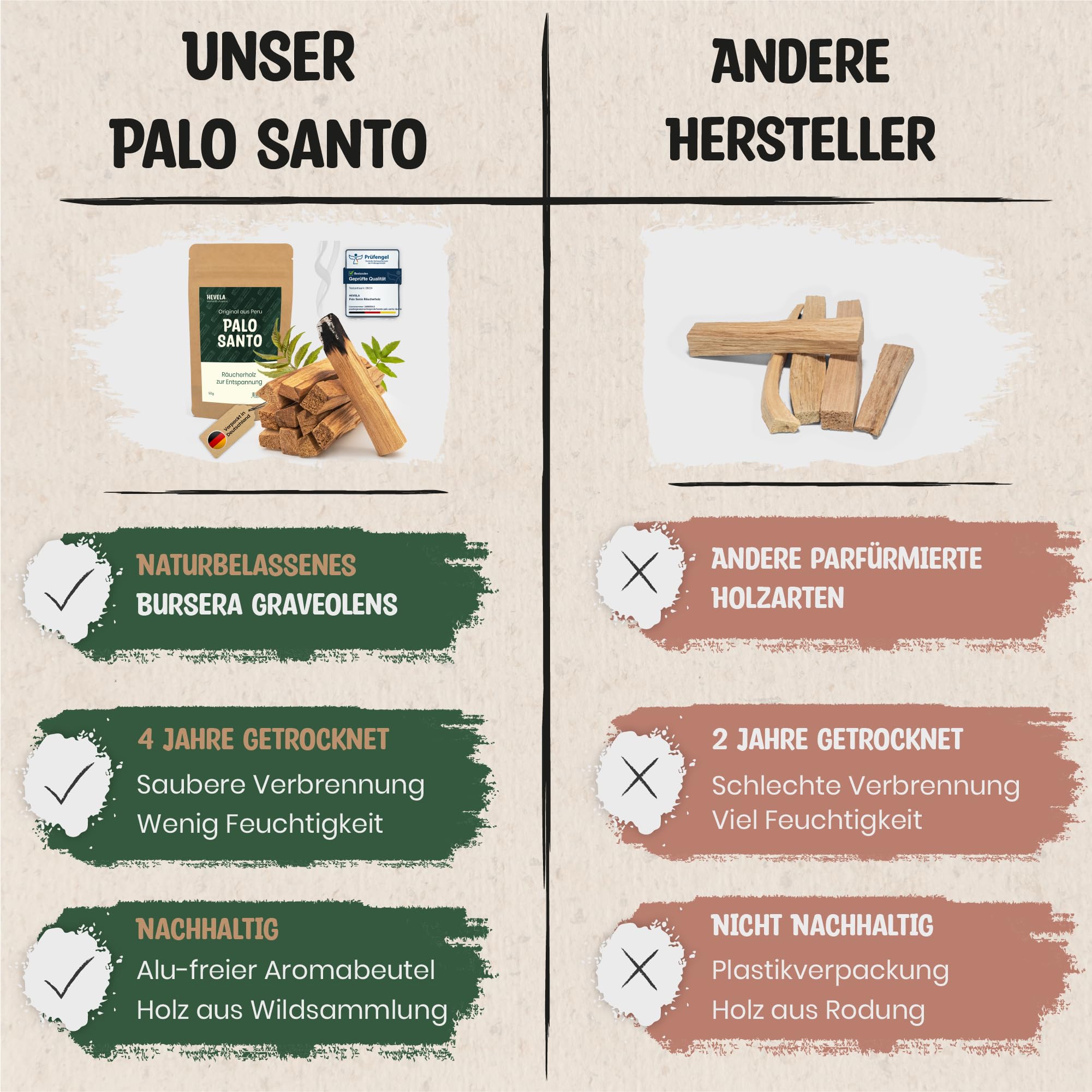 Hevela - Palo Santo Räucherholz [100% natürlich] - original aus Peru - zur Entspannung - natürliches Räucherwerk - wirkt natürlich gegen Insekten - Palo Santo Holz - Meditation - Rauhnächte