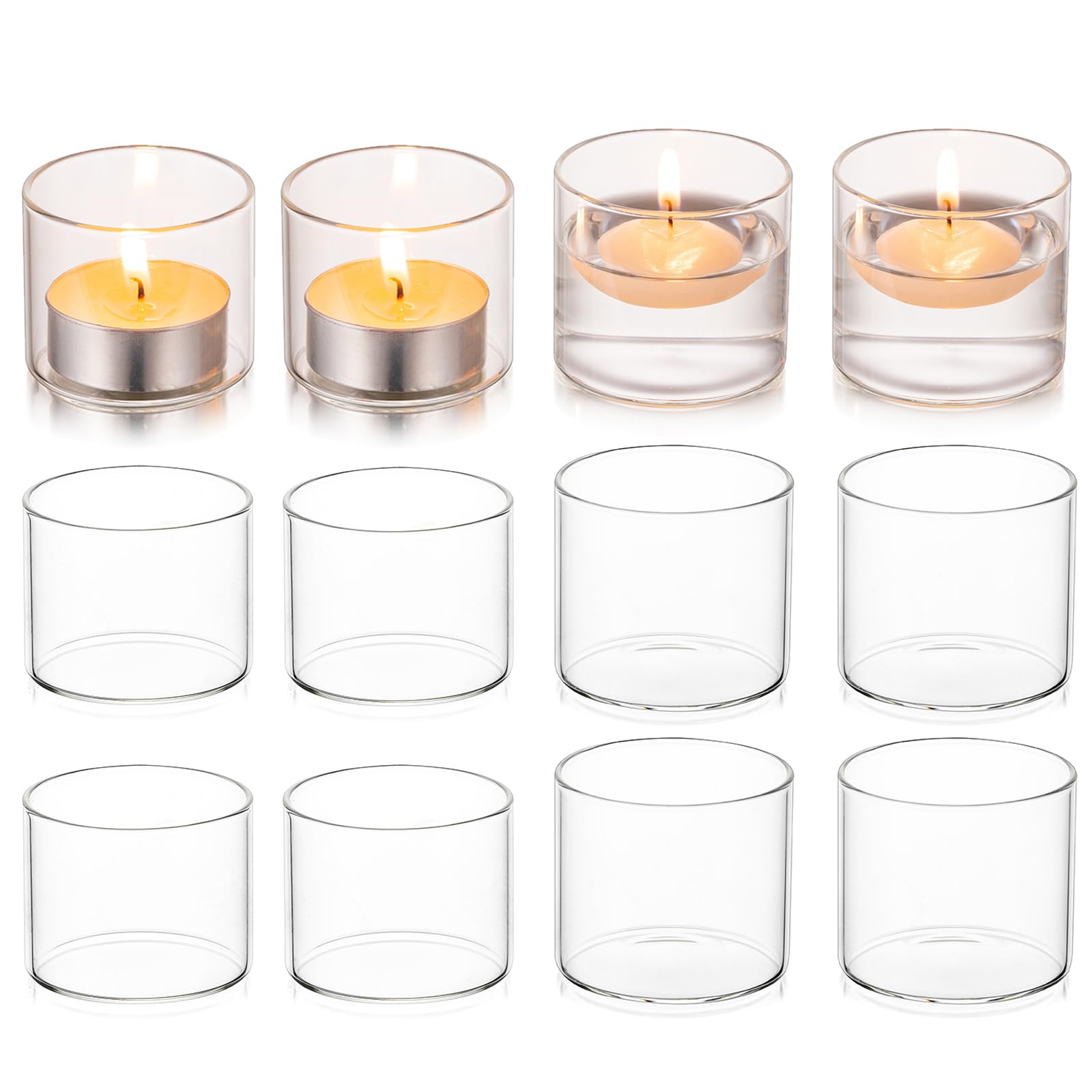 Hewory Teelichthalter Glas Klein Teelichtgläser: 12er Kerzengläser Teelichtglas Teelichter Glas Votivkerzenhalter, Klar Teelicht Gläser für Hochzeit Deko Wohnzimmer Tischdeko