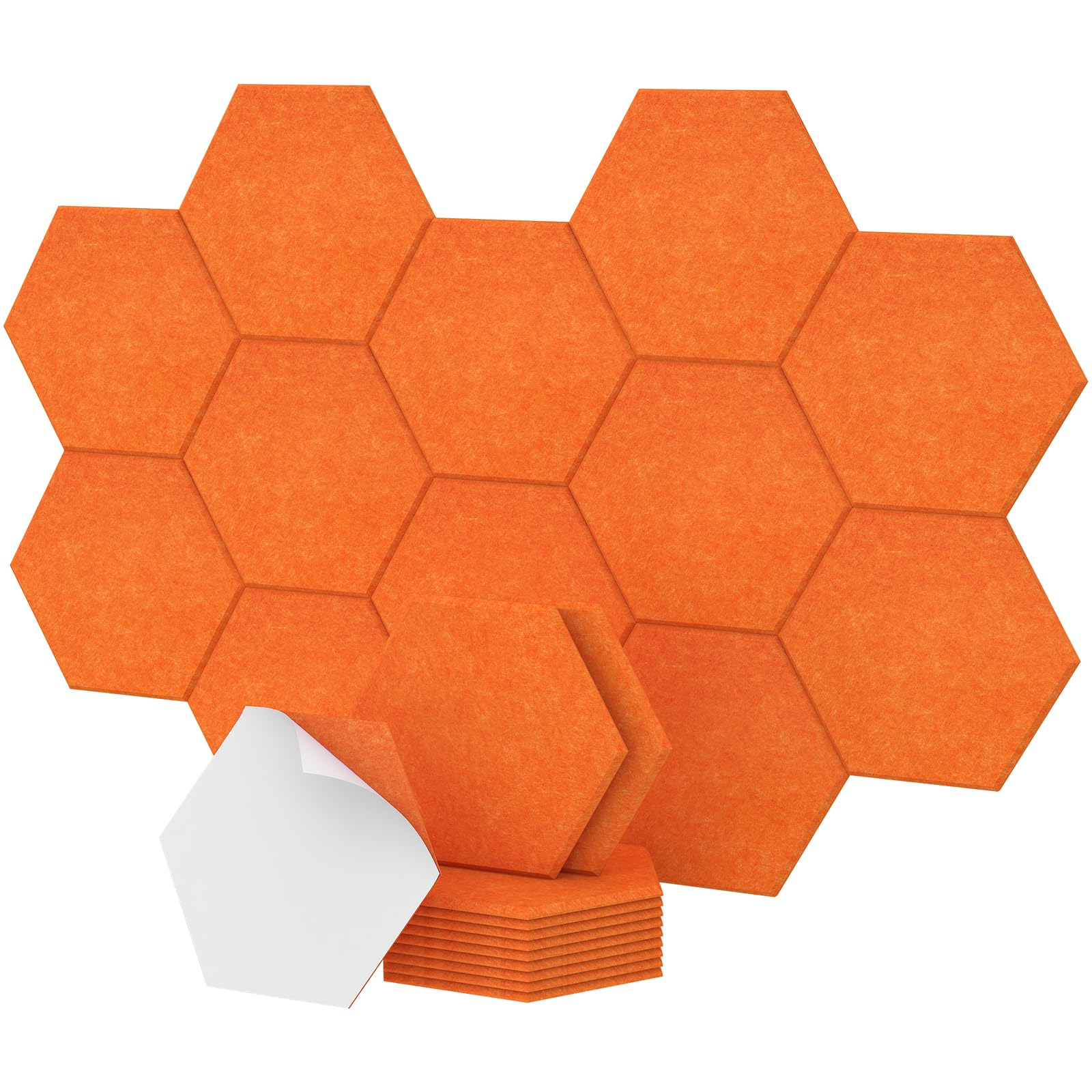 TONOR Acoustics sechseckige Akustikplatten, schallabsorbierende Paneele mit hoher Dichte, schalldichte Isolierung, abgeschrägte Kanten, Studio-Behandlungsfliesen, Orange, 12 Stück