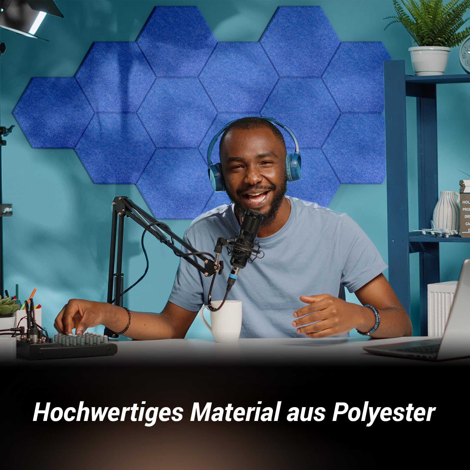 TONOR Acoustics sechseckige Akustikplatten, 35,6 x 30,5 x 1 cm, hohe Dichte, abgeschrägte Kanten, Studio-Behandlungsfliesen, Blau, 12 Stück