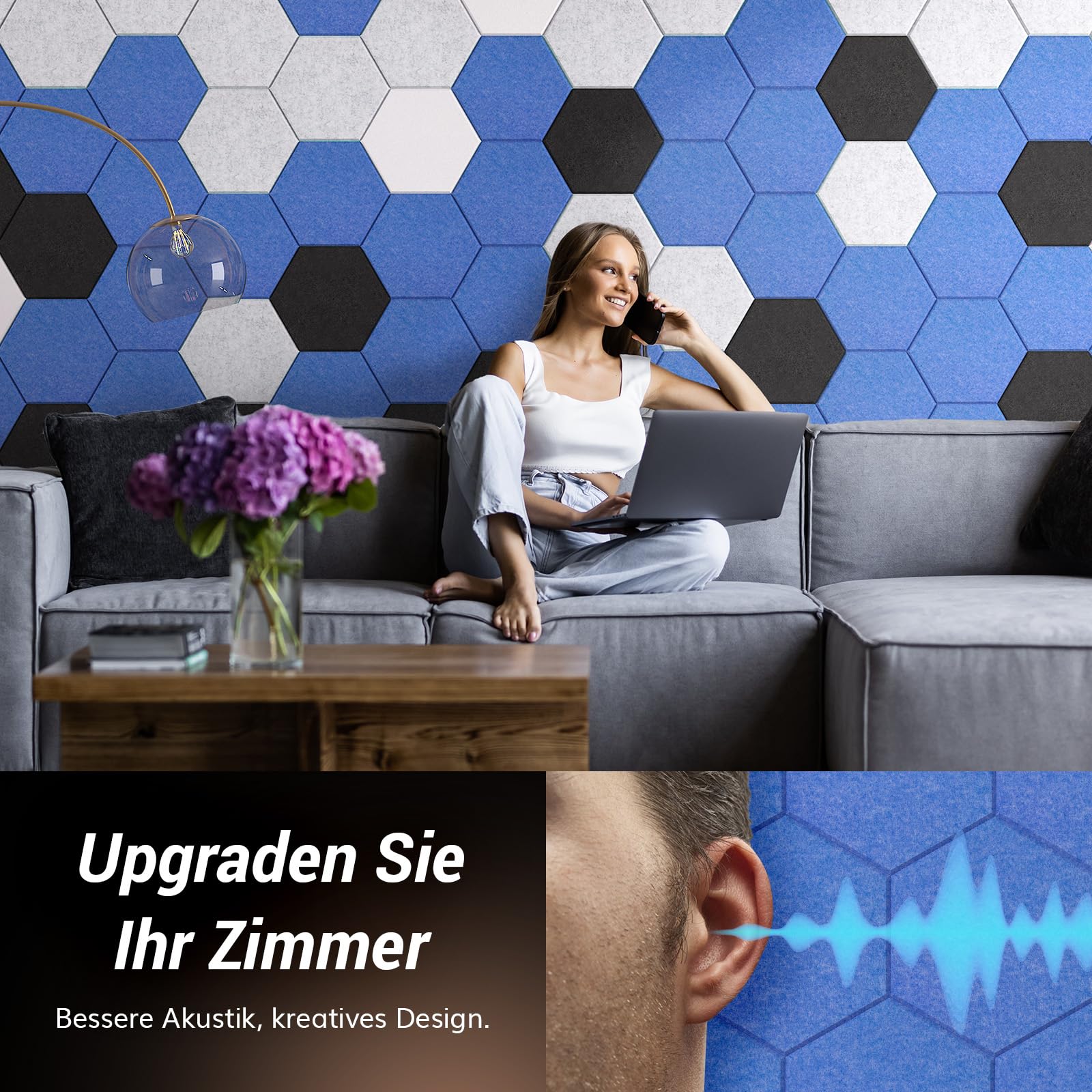 Hexagon Akustikplatten selbstklebend 12St. TONOR schallschutzplatten Schallschutz mit Hochdichte Wandfliesen Schalldämmung 30x26x1cm für Studio,Büro,Akustische Behandlung Wanddekoration Blau