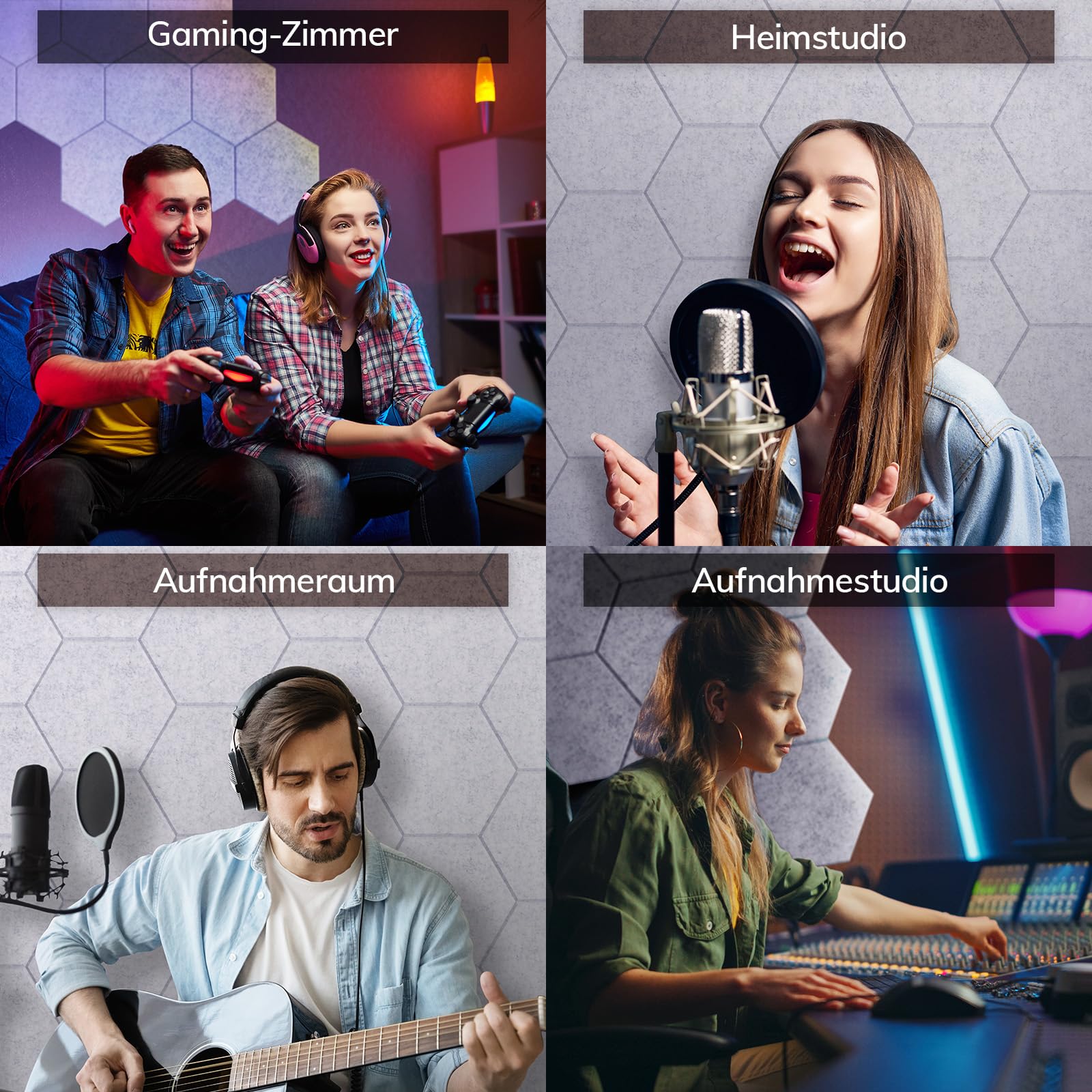 TONOR Acoustics sechseckige Akustikplatten, Abgeschrägte Kanten, Studio-Behandlungsfliesen, Hellgrau, 12 Stück