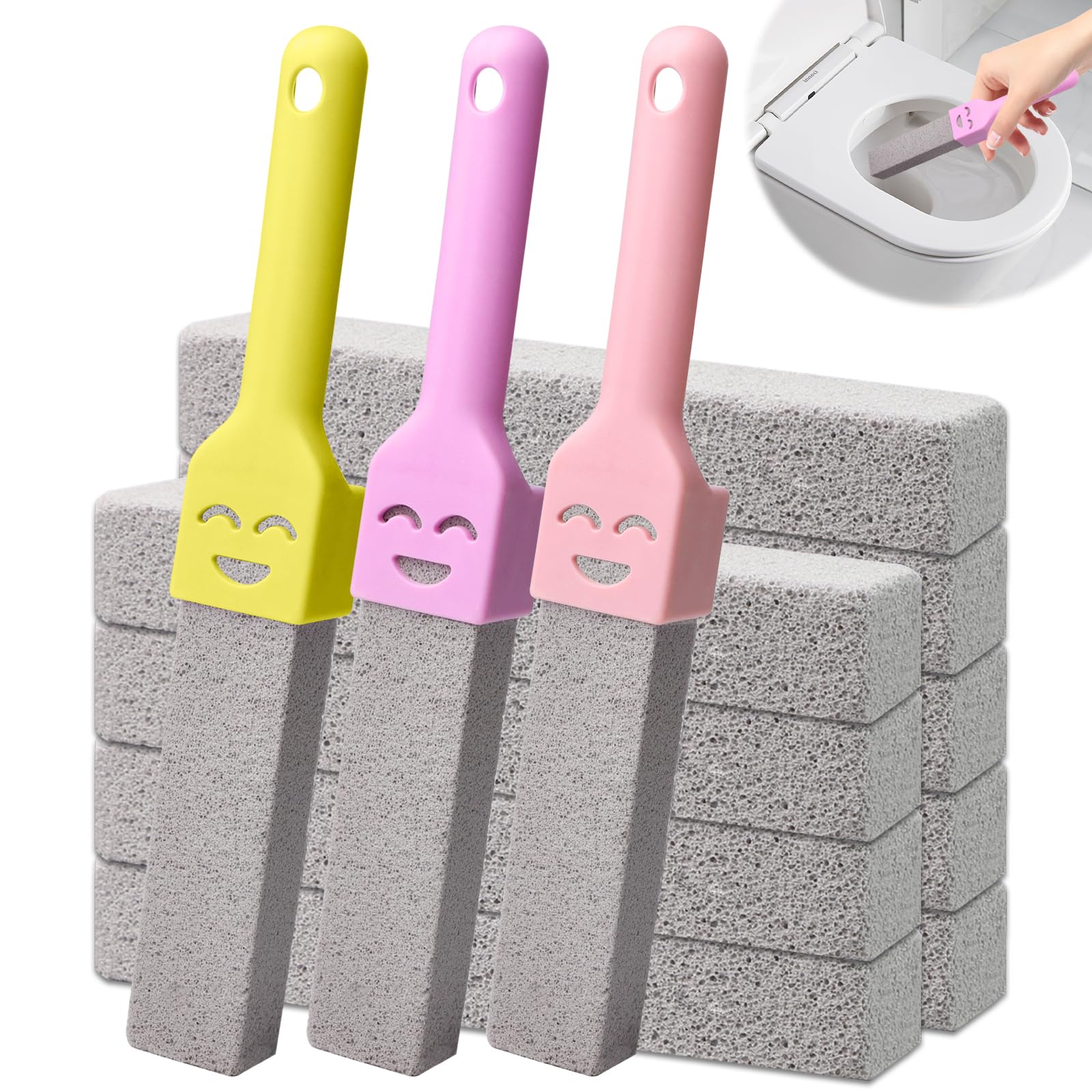 Hexizexi 12 Stück Bimsstein Toilettenreiniger Bimsstein Toilette mit 3 Griffe Austauschbar Pumice Stone für Toiletten Badezimmer Küchen Pools