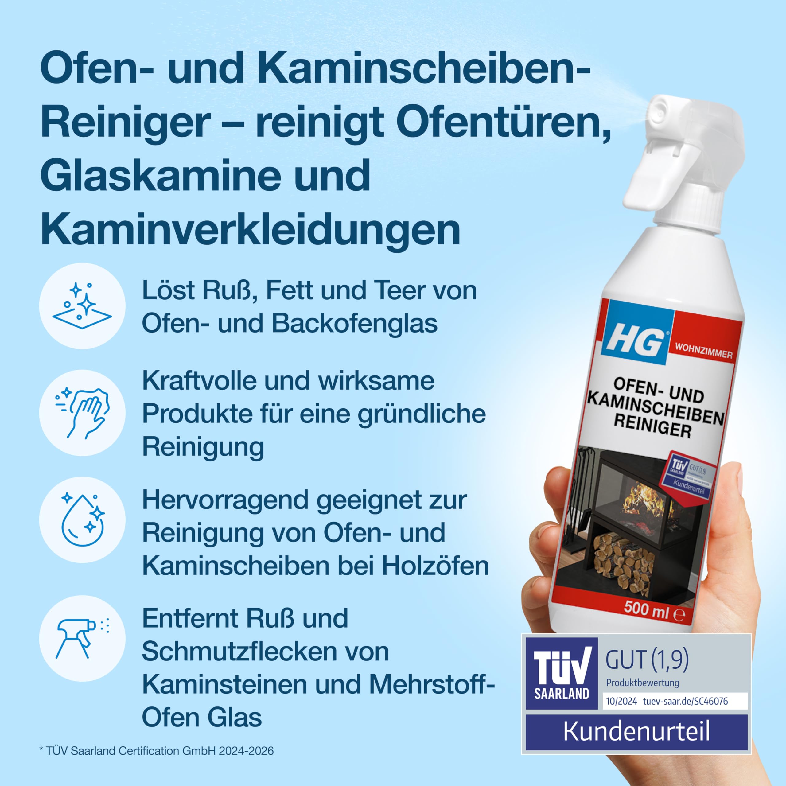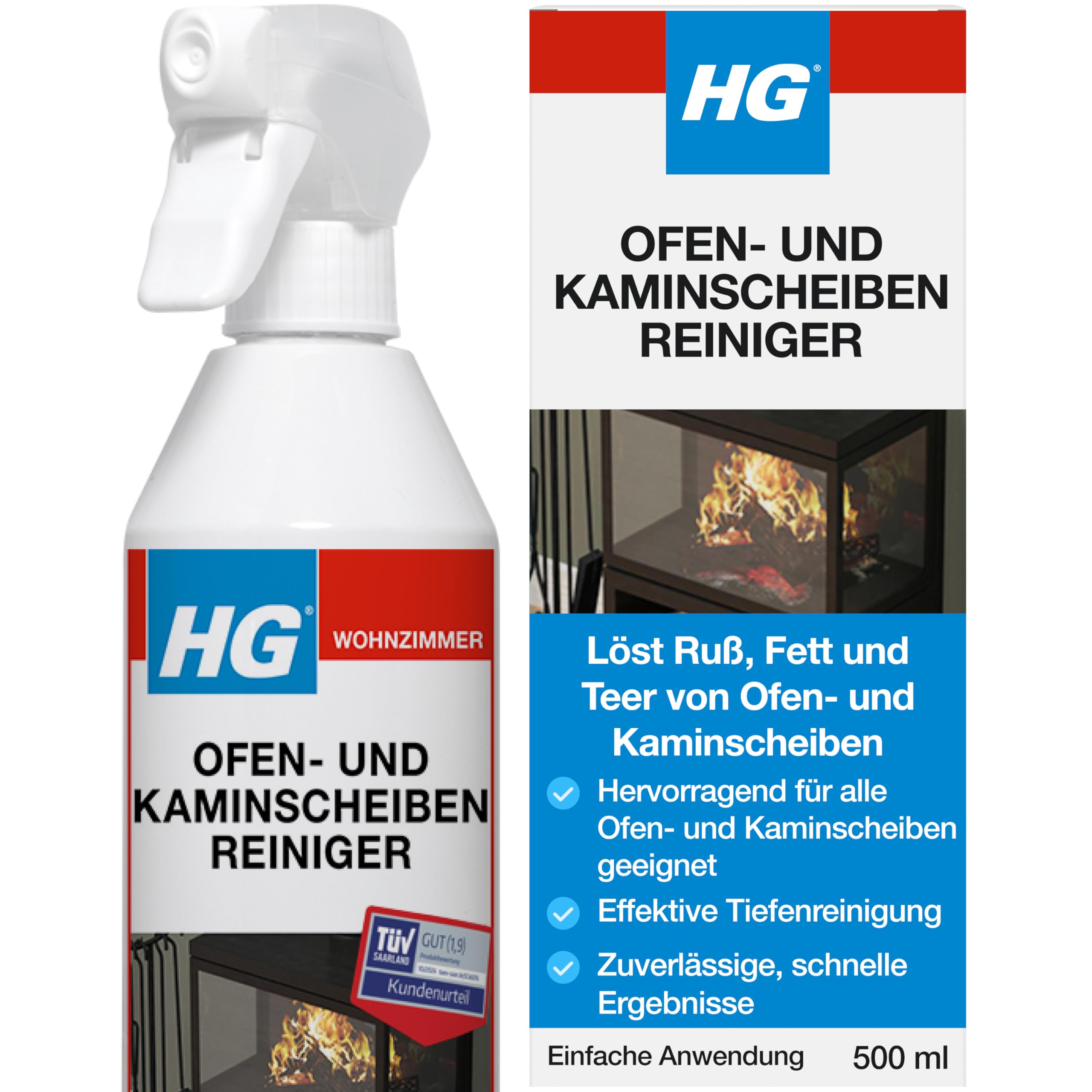 HG Ofenglasreiniger-Spray – Wirksamer Reiniger für Kamine, Öfen und Feuerstellen gegen Ruß, Teer und Fett – 500 ml