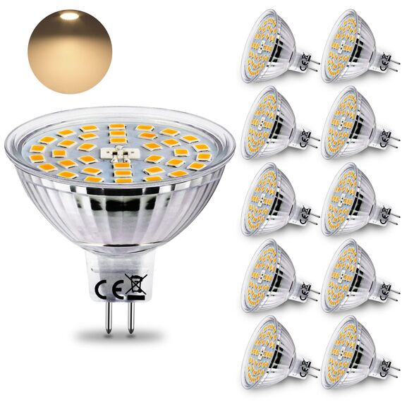 HiBay 10er LED Leuchtmittel 12V GU5.3 Lampen Warmweiss 3000K 4W (ersetzt 35W) 400lm MR16 LED Birne 12V AC/DC LED Spot