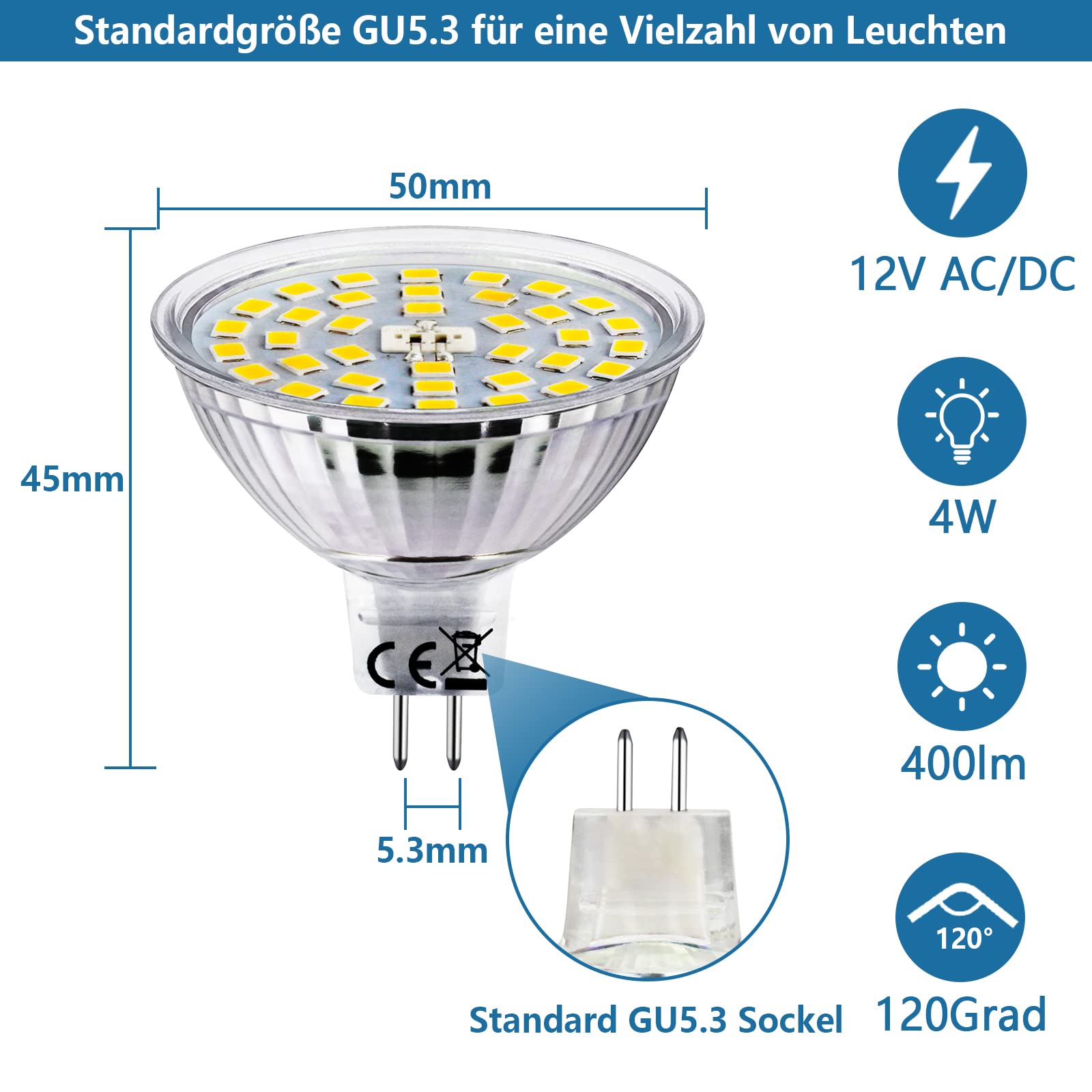 HiBay 10er LED Lampen 12V GU5.3 Kaltweiss 6000K AC/DC Leuchtmittel 4W Birnen 400 lm, Ersetzt 35W 45W, Nicht Dimmbar